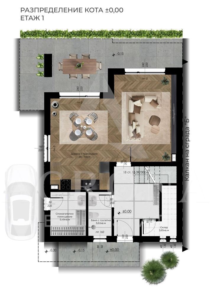 РЗП - 191 m?, двор 132 m? идеален за релакс, BBQ и семейни моменти.