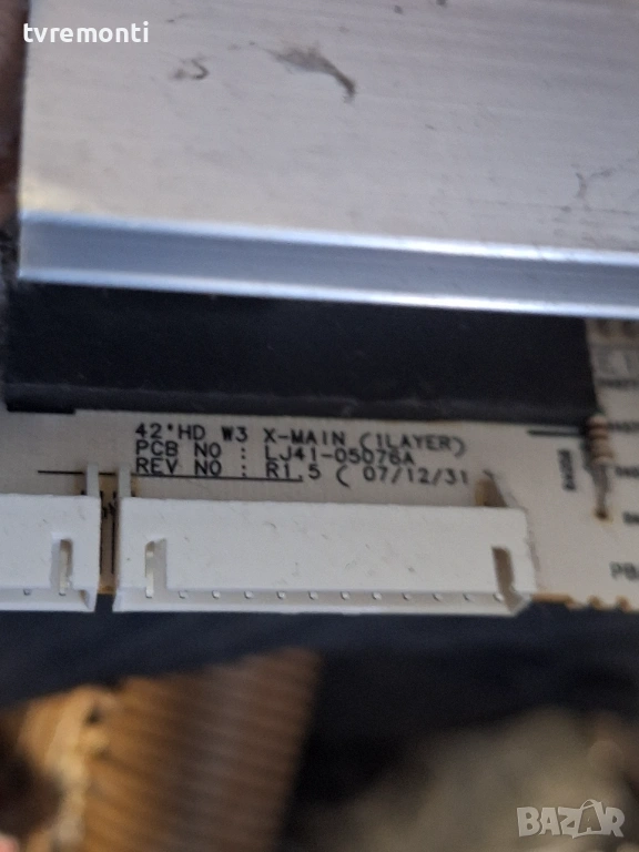 MAIN BOARD LJ41-05075A , for ,SAMSUNG PS42A456P2C 42inc DISPLAY S42AX-YB04 Платката е използвана, но гарантирано работеща, демонтирана от телевизор със счупен дисплей. Тествана е от нашия техник.