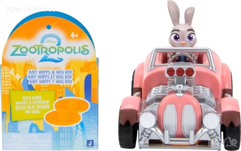 Смелата полицайка тръгва в действие с колата си и е готова за истинско преследване по улиците на града на животните, Метропола. Играчката комбинира детайлно изработена фигурка на Джуди с нейния автомобил и предлага на децата възможност да преживеят отново сцени от филма Зоотрополис 2. Просто натиснете бутона на капака на колата и изстреляйте диска по злодея – действието може да започне! Страхотен подарък за феновете и малките колекционери.
