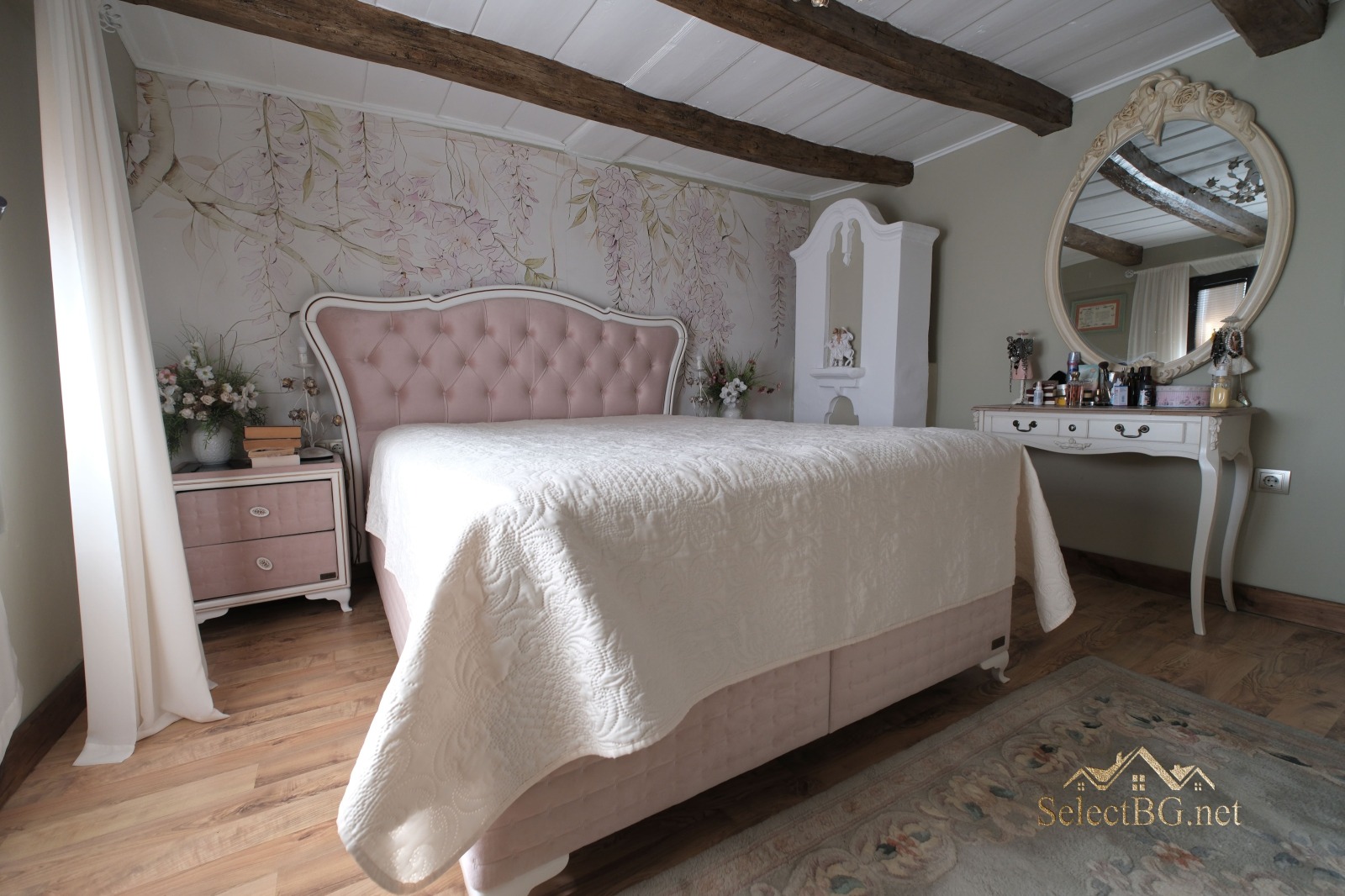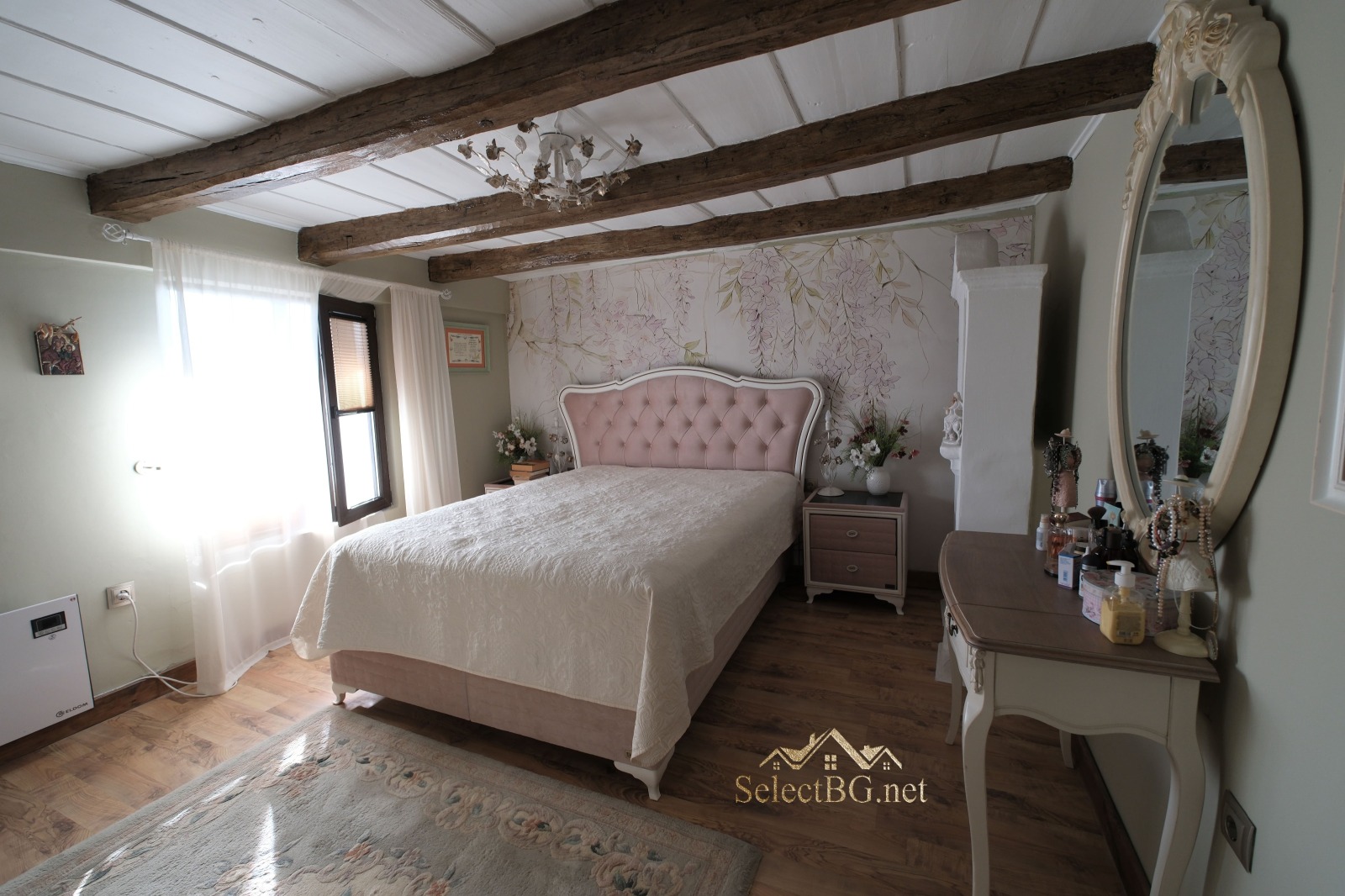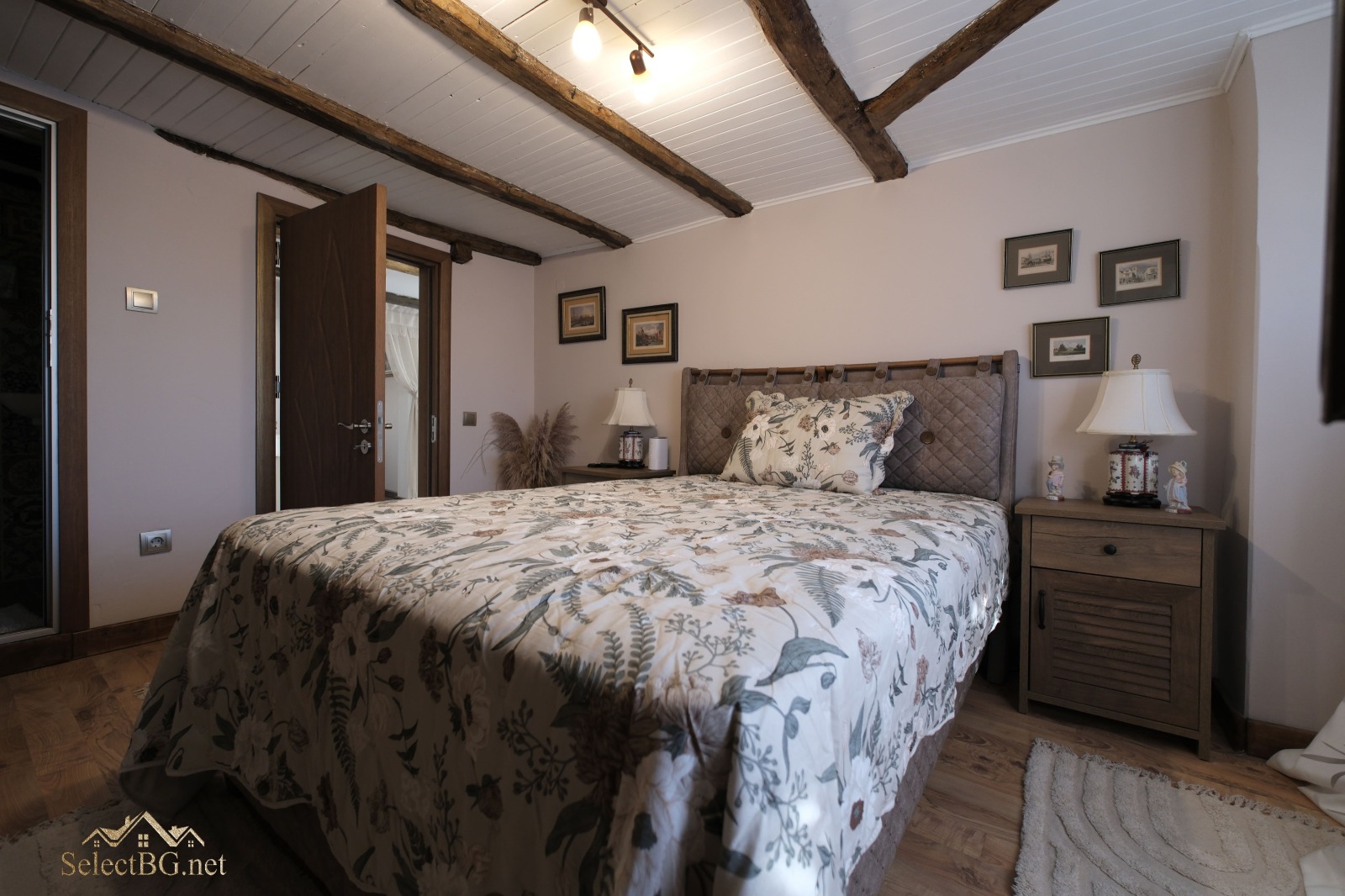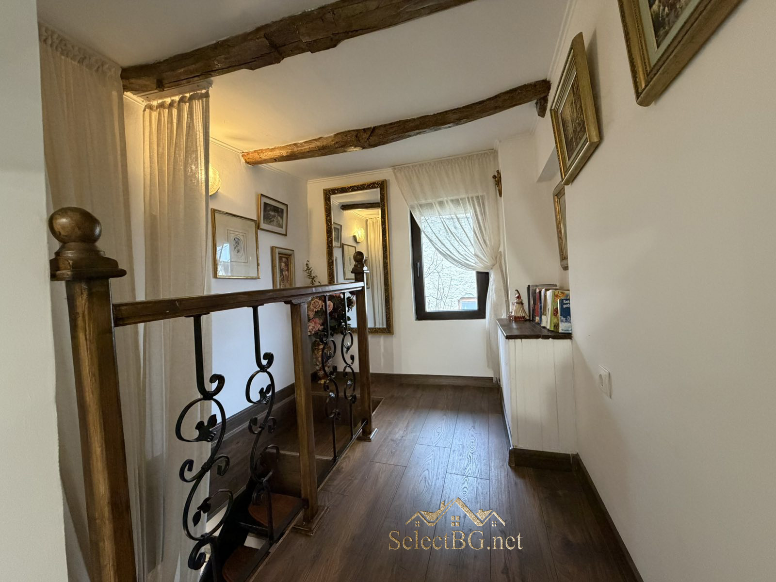 По масивно дървено вътрешно стълбище се достига до втория етаж, където са разположени три спални, всяка със собствен характер. Една от спалните разполага с тераса с красива панорамна гледка, друга спалня е със самостоятелна баня с тоалетна.