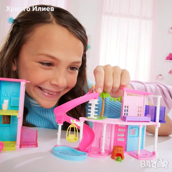 Влез в света на куклата Barbie с Mini BarbieLand! Това е място, където големите мечти се сбъдват в мини вариант! Създадени с изключителна прецизност към детайлите, тези мини комплекти къщи за кукли са готови за игра. Всяка къща на е проектирана с малки изненади, като работещ асансьор, пързалка или басейн - точно като къщата на мечтите в стандартен размер!