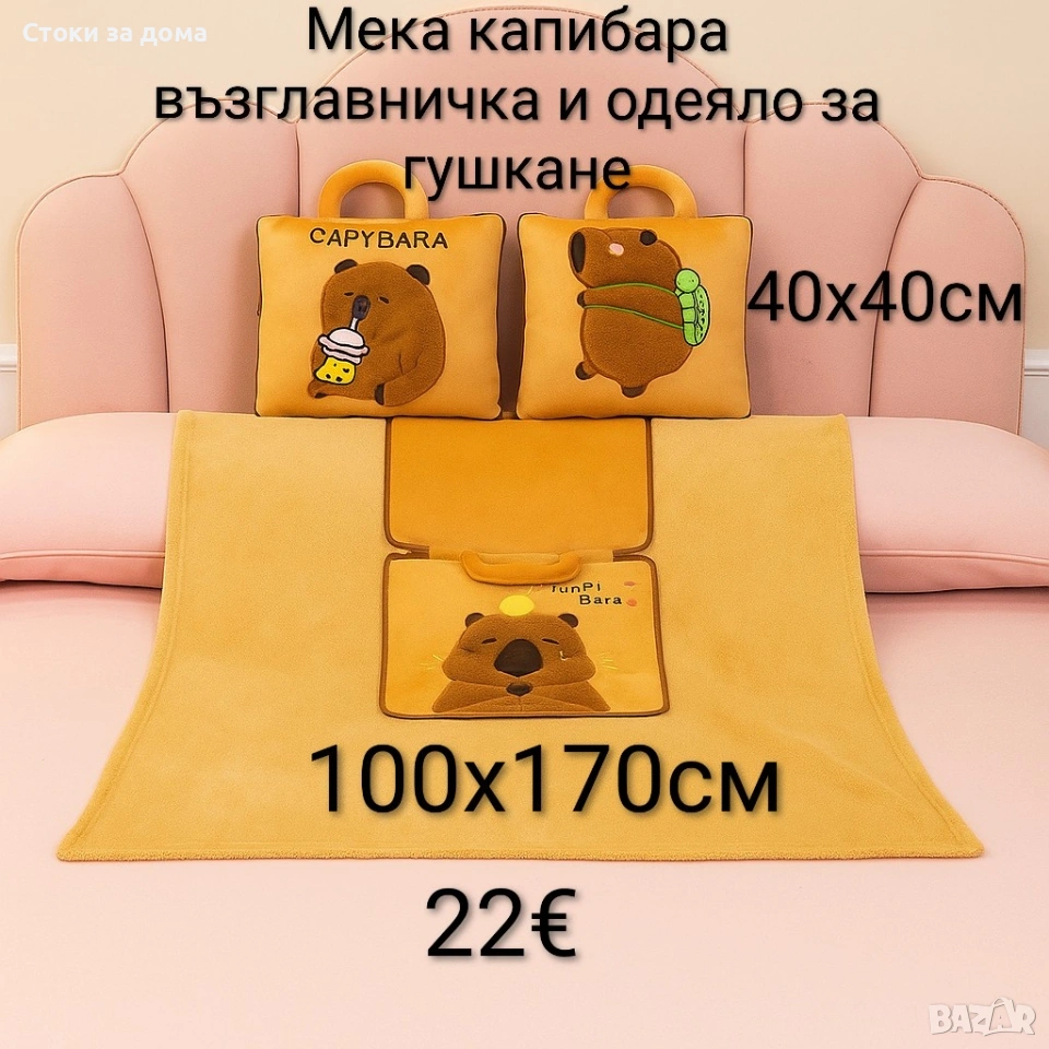 Капибара/лабубу възглавничка и одеяло за гушкане → Обява 53428741