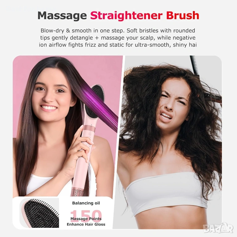 【Без увреждане от топлина, задържа блясъка】 Професионалният стилизатор за коса с горещ въздух 5 в 1 има интелигентен контрол на температурата, който изсушава бързо, без да уврежда косата ви. 300 милиона йона с висока концентрация (10 пъти повече от обикновените сешоари!) могат да неутрализират статичното електричество, да задържат влагата и незабавно да изгладят къдриците за дълготрайна гладка и блестяща коса. С найлонови влакна, които не се заплитат, можете да сушите със сешоар, да изправяте и къдрите, като лесно създавате гладка и здрава коса като от салон!