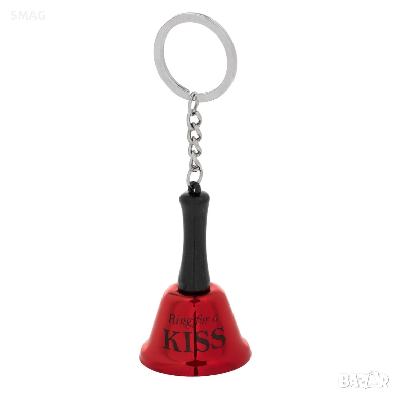 Романтичен и закачлив ключодържател с червена камбанка и надпис „Ring For a KISS“, който носи настроение и усмивка всеки път, когато го използвате. Контрастната черна дръжка подчертава дизайна, а нежният звън на камбанката го прави още по-атрактивен аксесоар.