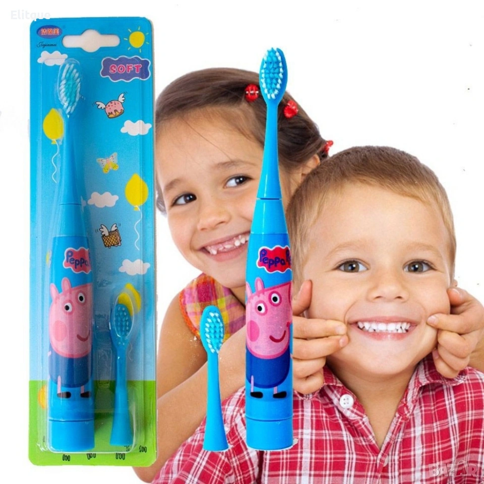 Детска електрическа ултразвукова четка за зъби с допълнителен накрайник Забавна и практична детска електрическа ултразвукова четка за зъби, създадена да превърне миенето на зъби в приятно занимание. Подходяща за деца, като осигурява ефективно и нежно почистване на зъбите и венците. Четката е с атрактивен дизайн и се предлага в два варианта, които са любими на децата. В комплекта е включен и допълнителен накрайник за по-дълготрайна употреба. Характеристики: Тип: електрическа ултразвукова четка за зъби Захранване: 1 × AA батерия (не е включена) Включен допълнителен накрайник Подходяща за деца Цветове / дизайни: Светло розов – Пепа Пиг Тъмно розов – Kitty Предимства: Нежно и ефективно почистване Атрактивен детски дизайн Лесна за използване Подходяща за ежедневна грижа за устната хигиена Доставка с Еконт с опция преглед до 3 работни дни.