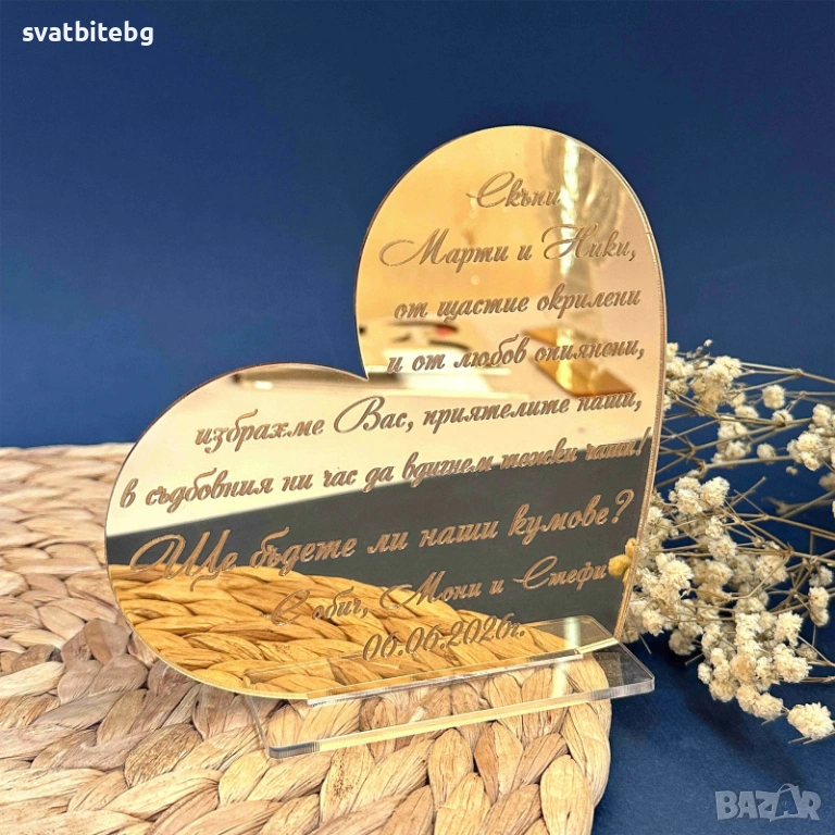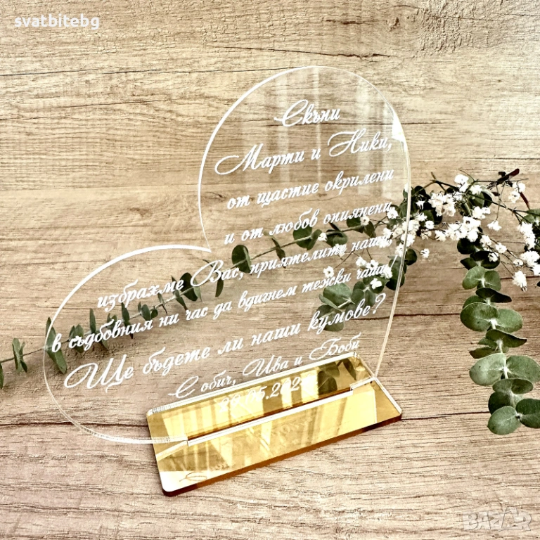 С нашите покани за кумове започвате сватбения си ден по най-красивия начин.