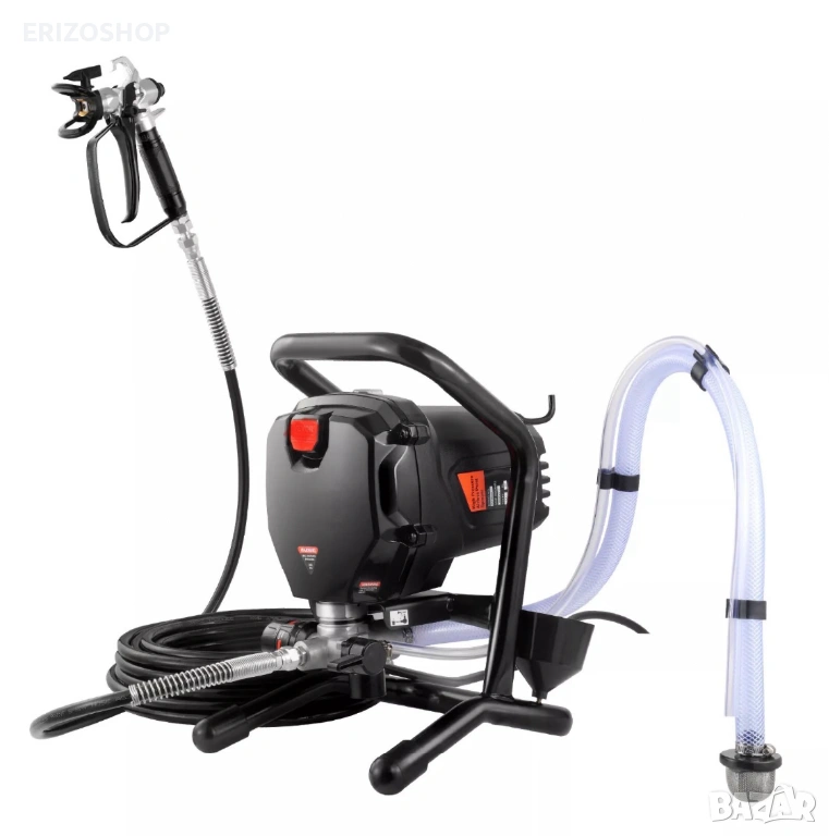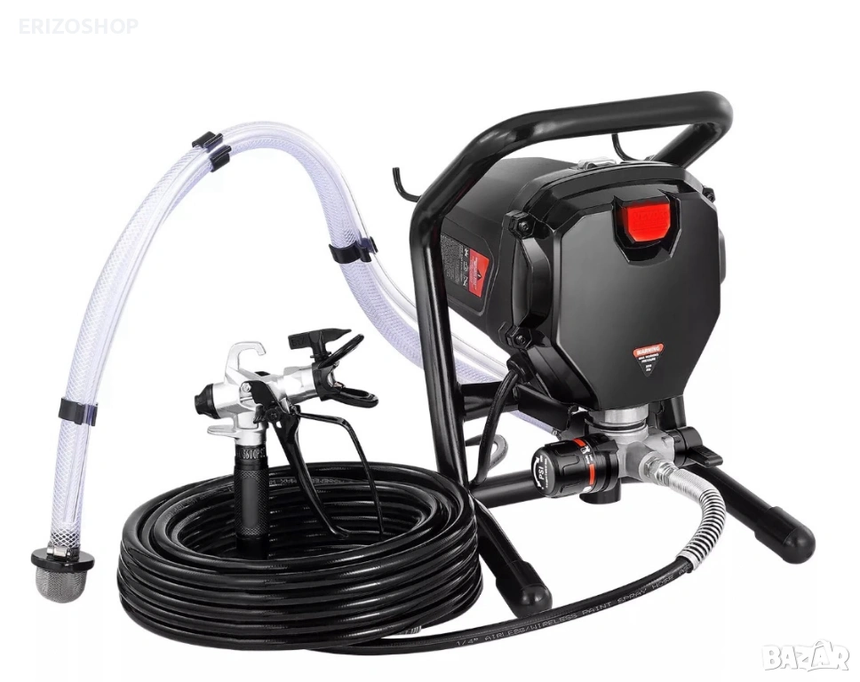 НОВА ! Машина за безвъздушно боядисване с латекс , грундове и лакове на водна основа! Модел X 9 . Контрол на налягането за работа с различни видове дюзи за високо и ниско налягане !Комплектът включва :