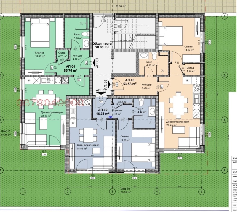 Единият е 55,70кв.м, другият свободен е 53,53кв.м.