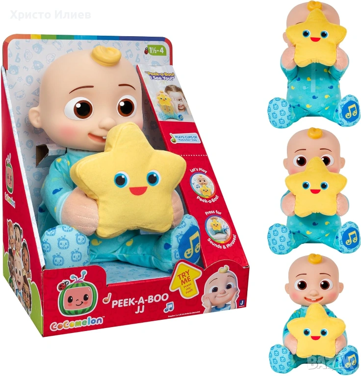 - PEEK-A-BOO JJ: Време е да играете Peek-A-BOO с JJ на CoCoComelon! JJ се крие зад плюшена звезда и магически се появява отново, за да изненада вашето мъниче.
