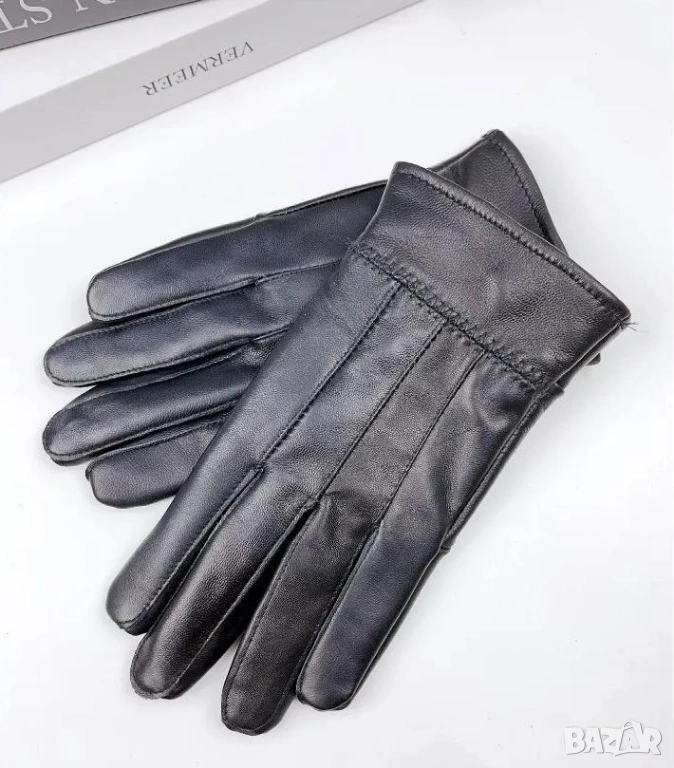 Мъжки зимни топли поларени ръкавици от естествена агнешка кожа за шофиране на мотоциклет, тънки, с цял пръст.