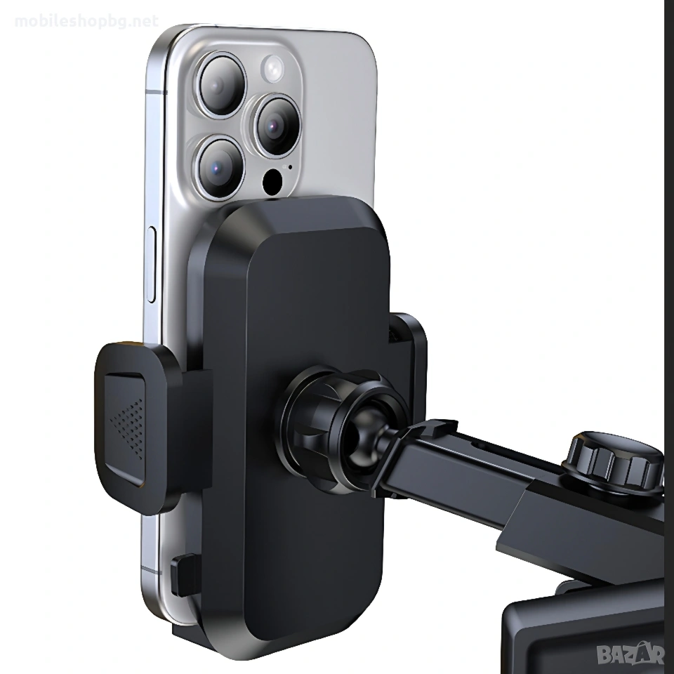 Стойка за телефон за автомобил. Много стабилна, с опция за одължаване. Закрепя се на стъклото или таблото с вакум.