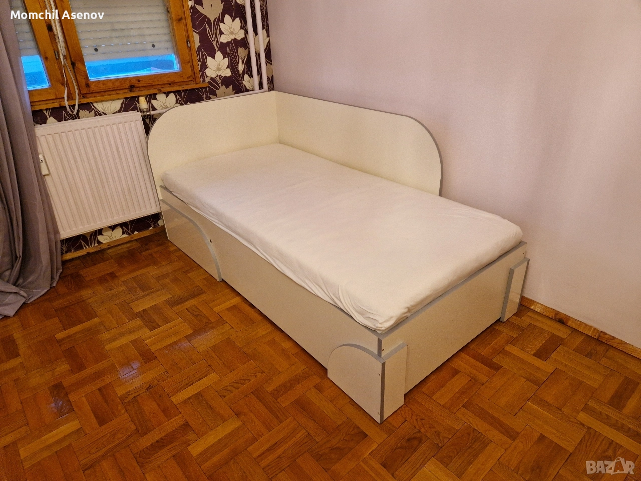 Леглото е от ламинирано ПДЧ, в добро състояние.