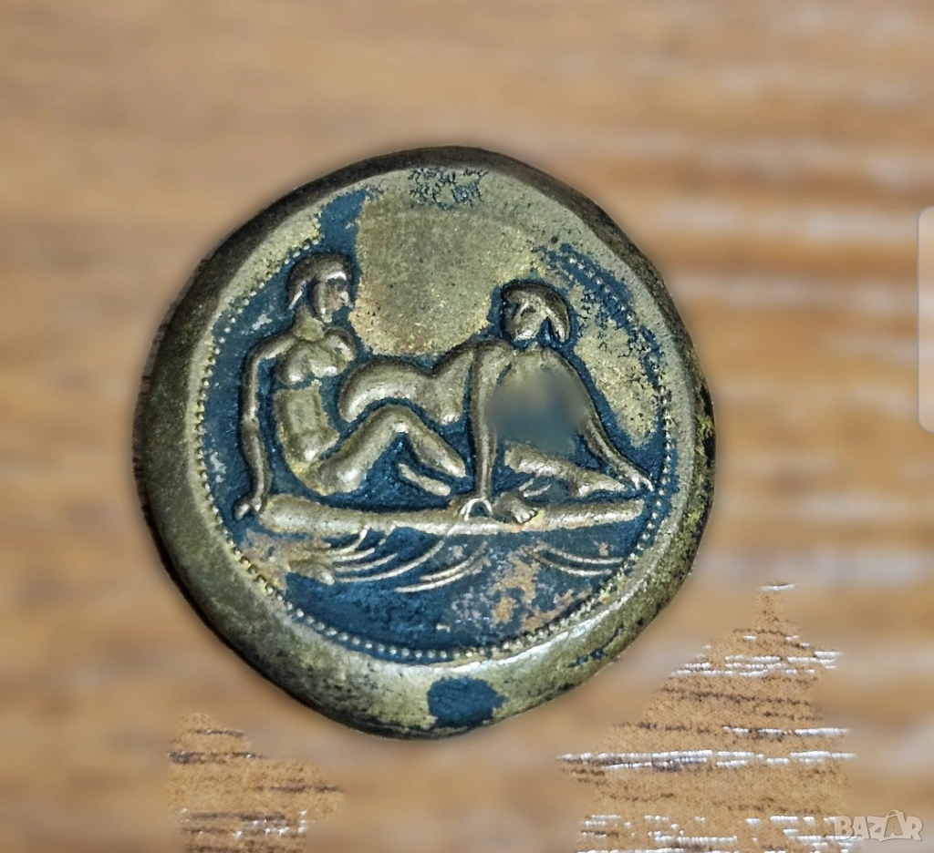 Стара реплика на бронзов Римски жетон 14 за публичен дом 18+ еротика секс