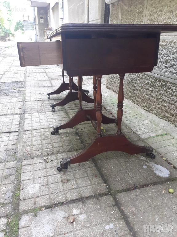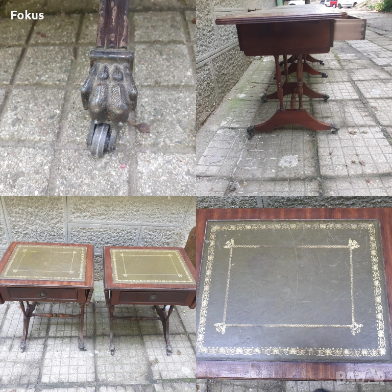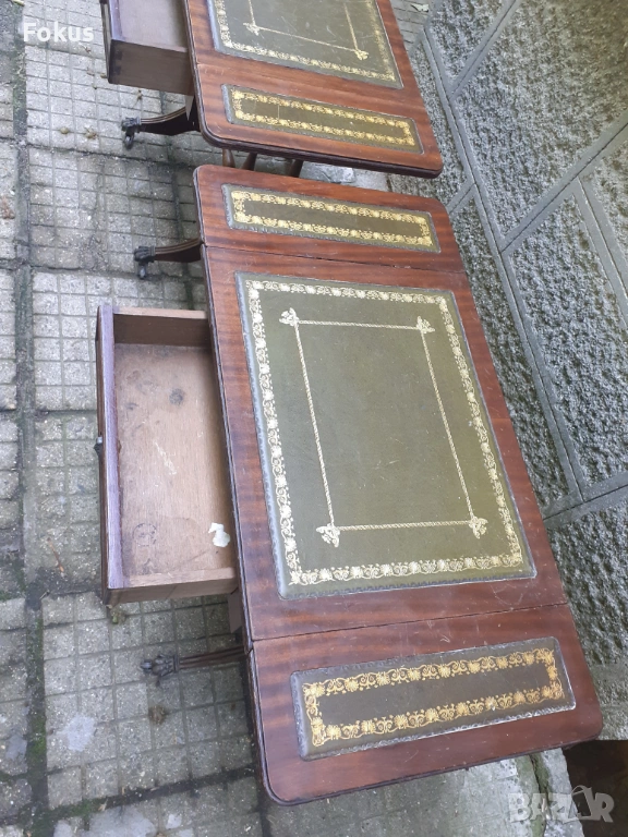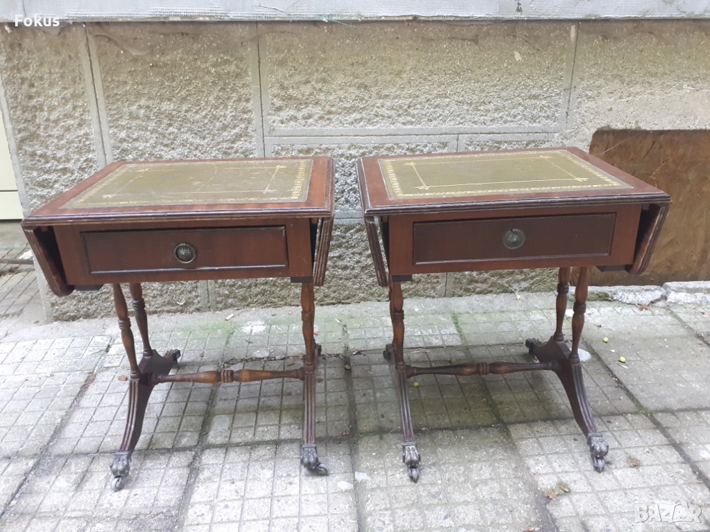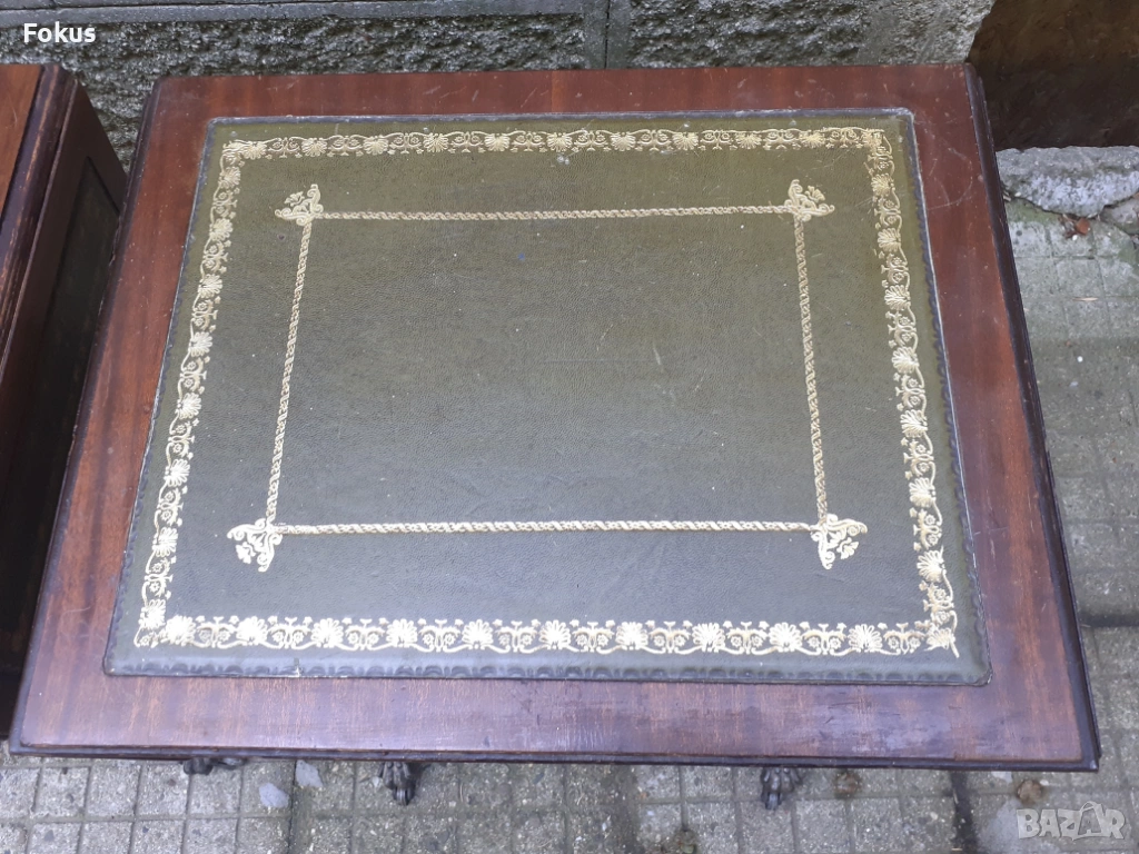 Две винтич масички от махагон със зелена кожа и златен лист → Обява 53429510