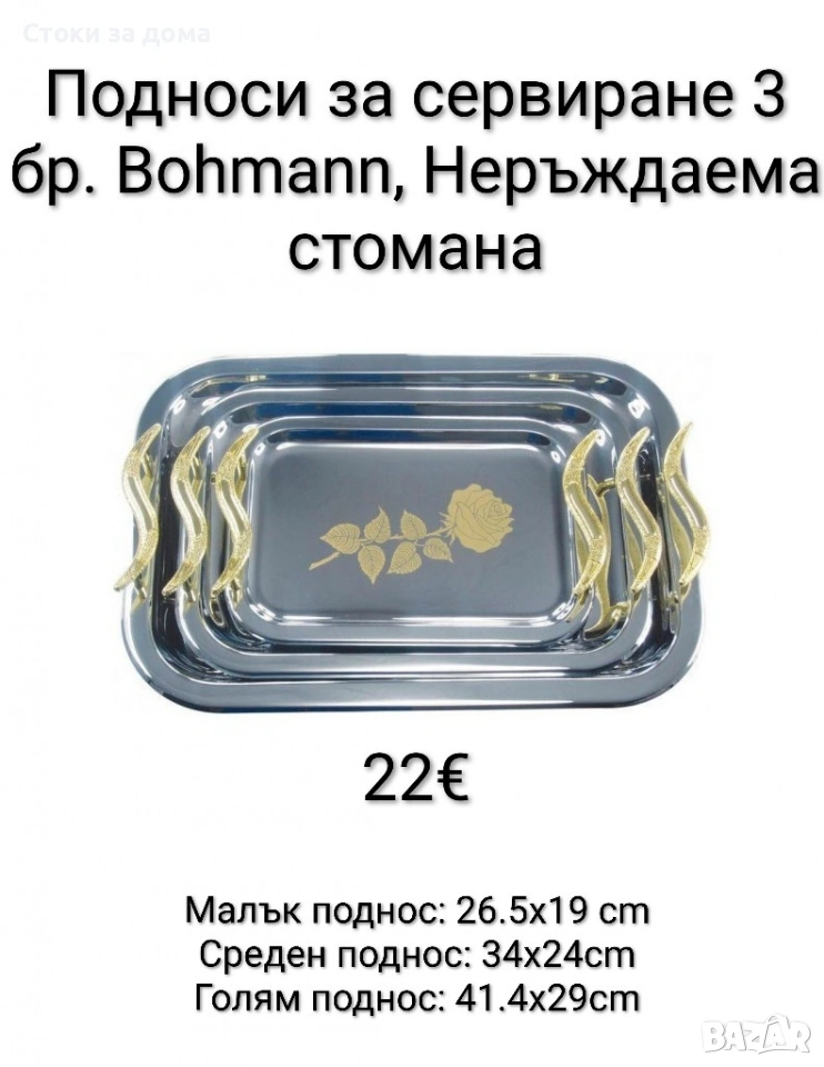 Подноси за сервиране 3 бр. Bohmann, Неръждаема стомана