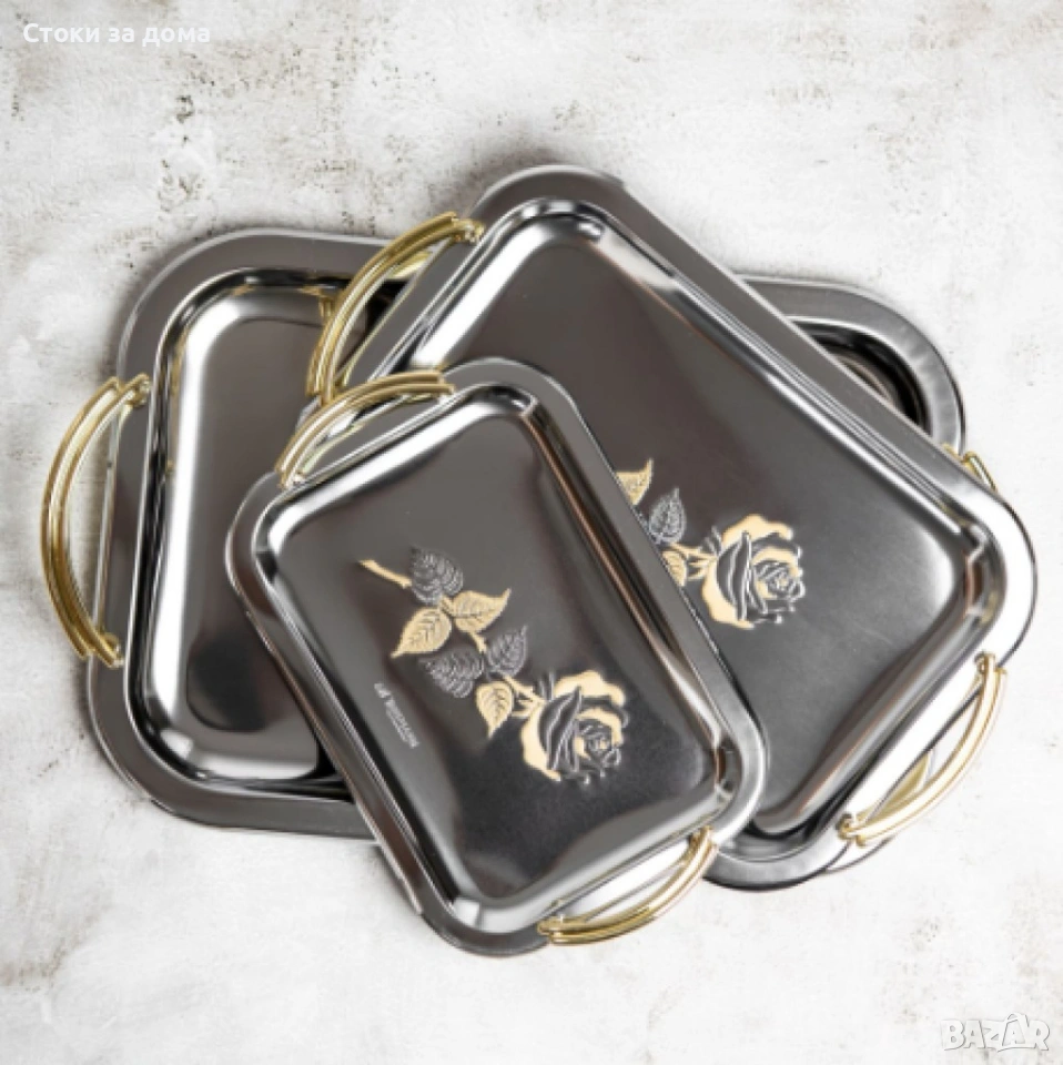 Комплектите подноси са с различни шарки, изпращат се според наличността в склада.