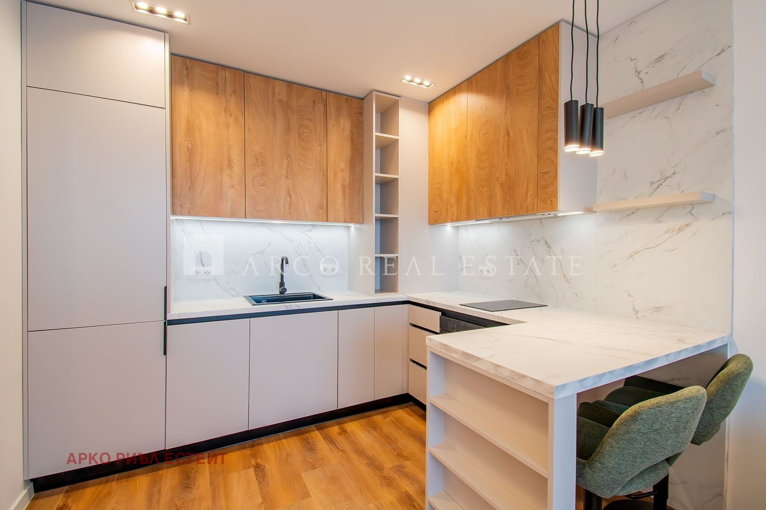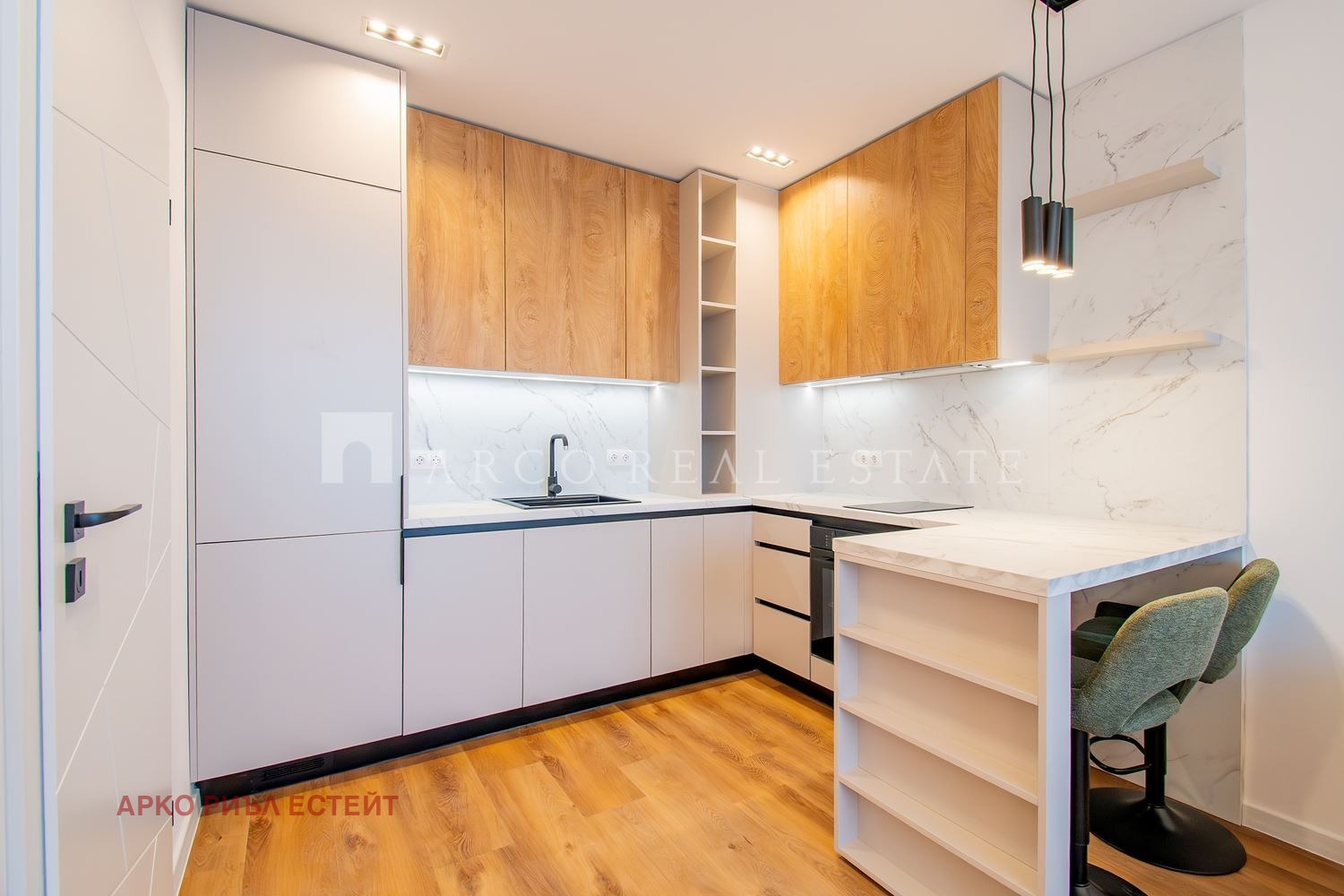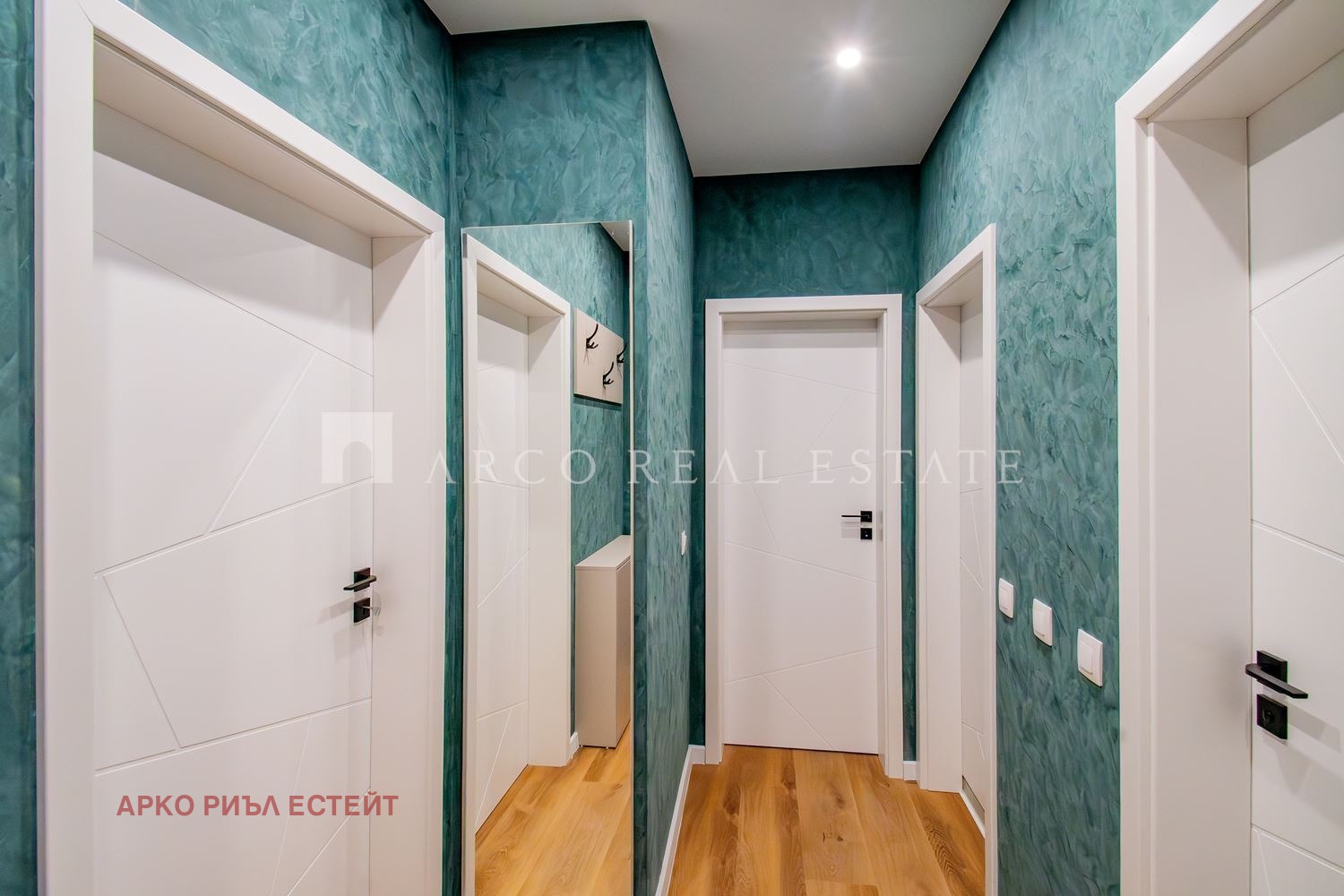Апартаментът е изпълнен по дизайнерски проект, изцяло обзаведен, като мебелите са изработени по поръчка, с внимание към детайла и функционалността.