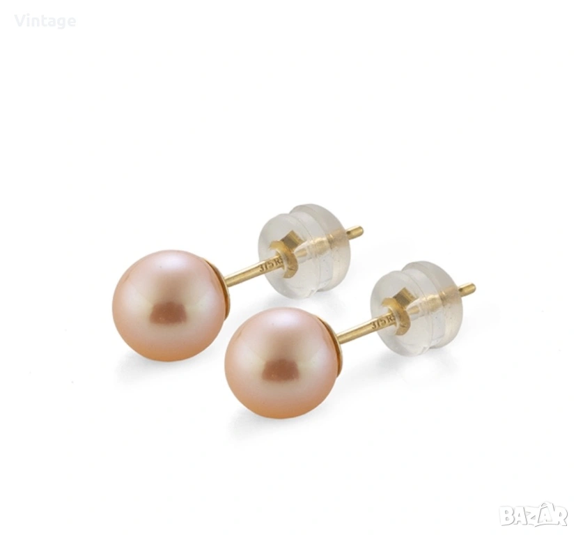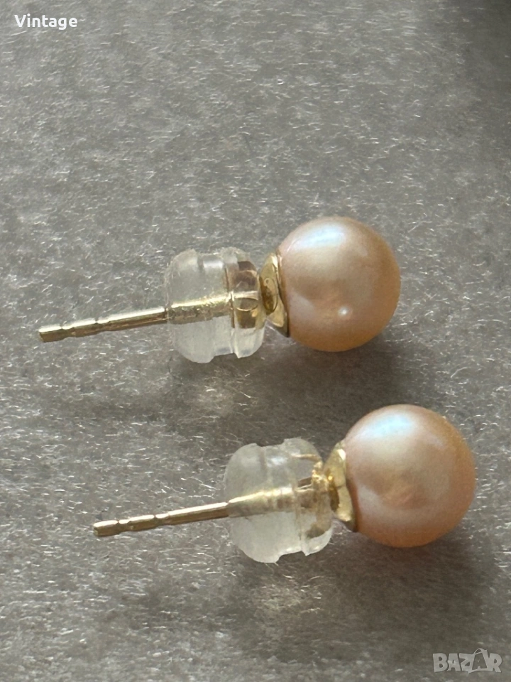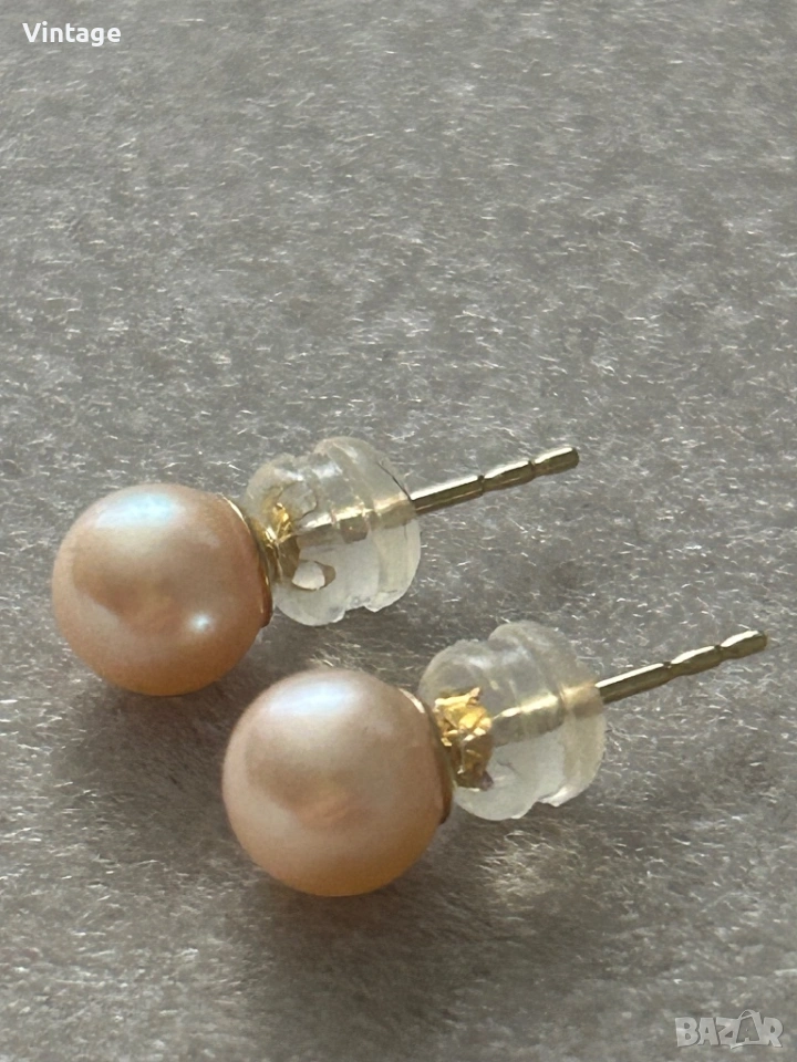 Вечна класика! Златни обеци с розови перли Акоя → Обява 53429679