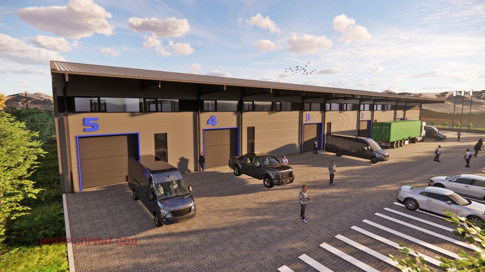 * Сгради: Имотът се състои от пет склада с площ между 230 кв.м и 430 кв.м. всеки. Към всеки склад има изграден офис с площ от 90 кв.м, разположен на ниво +4 метра. Всеки склад има идеални части и собствен двор.