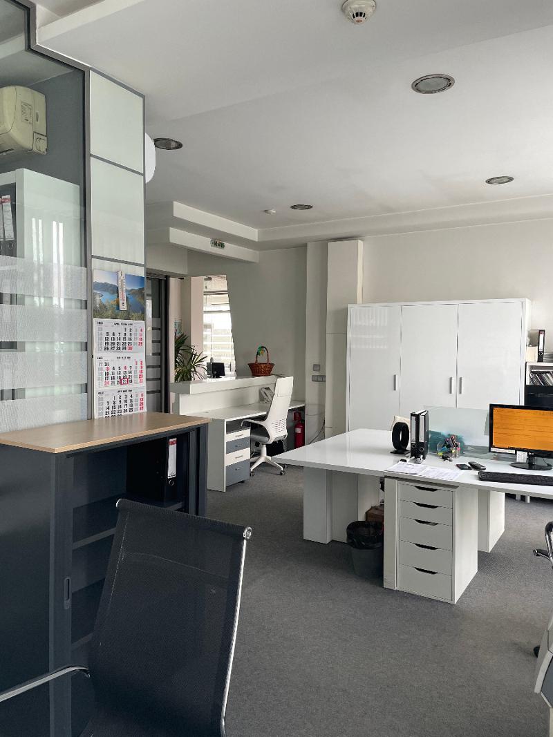 Дава под наем, 230кв/м обзаведен, като офис с висок клас мебели, подходящ, за магазин, зъболекарски кабинет, клиника, нотариус, магазин и тн.. парцела е ъглов, перфектна видимост от булеварда, мястото е отлично за всякаква дейност...!!!