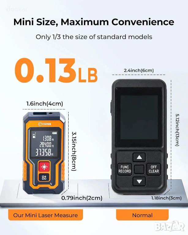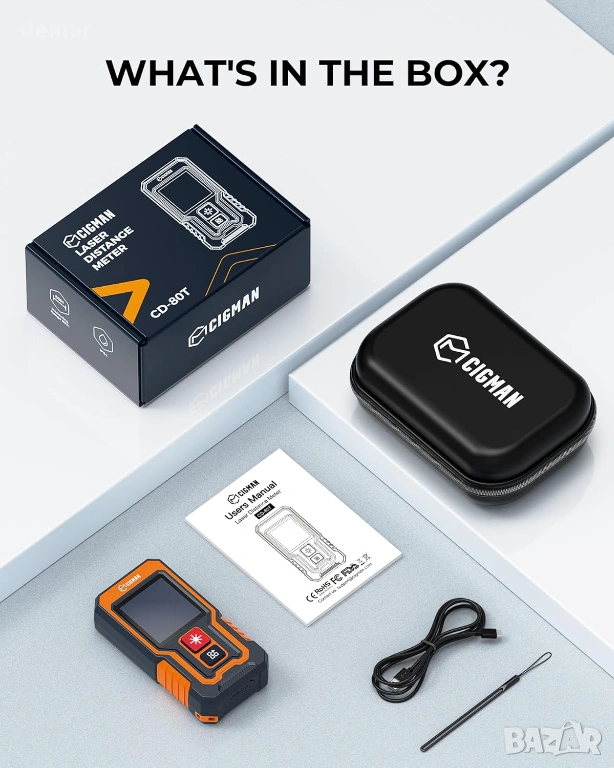 CIGMAN Лазерен далекомер на разстояние до 80 метра, 300mAh