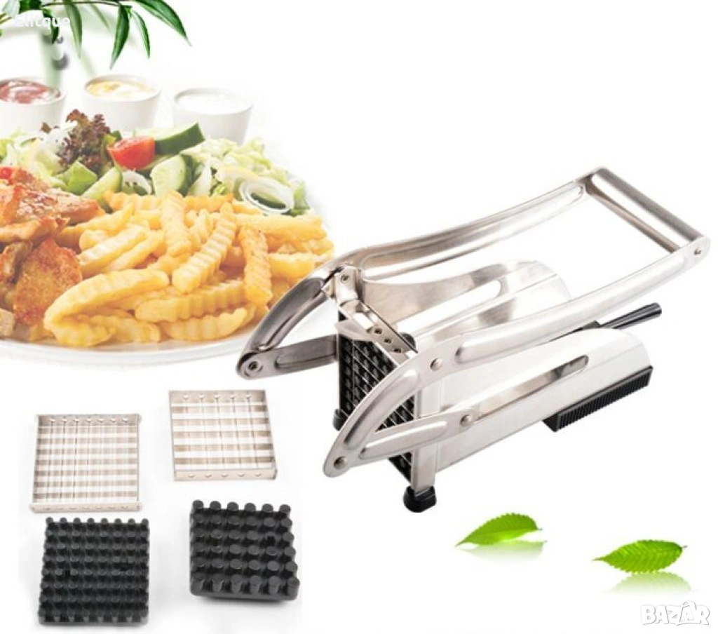 Преса за картофи с две сменяеми приставки от неръждаема стомана Практична и удобна преса за картофи, предназначена за бързо и лесно приготвяне на пържени картофи и зеленчуци с еднаква форма. Благодарение на двете сменяеми приставки можете да избирате различен размер на нарязване според предпочитанията си. Изработена от устойчиви материали с остриета от неръждаема стомана, пресата осигурява прецизно рязане и дълготрайна употреба. Характеристики: 2 сменяеми приставки за рязане Остриета от неръждаема стомана Подходяща за картофи и други зеленчуци Здрава и стабилна конструкция Лесна за използване и почистване Доставка с Еконт с опция преглед до 3 работни дни.