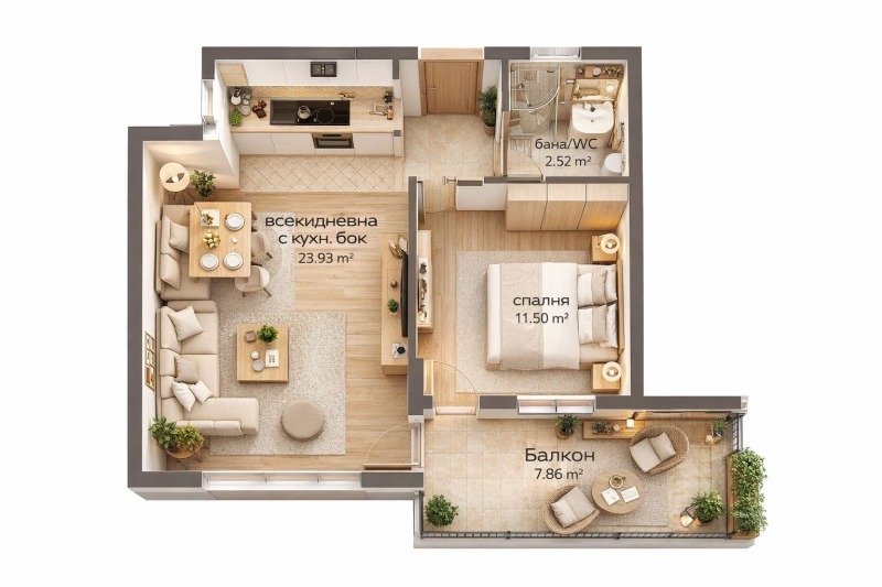 📐 Площ: 72 кв.м. със следното разпределение: