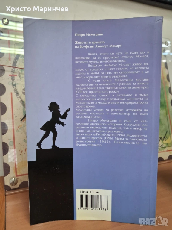 С тази книга Мелограни доставя удоволствие на читателите с разказа за живота на един гений. Едно очарователно пътуване през XVIII век, приятно като роман. С методична точност в детайлите и тънка интроспекция авторът разглежда личността на Моцарт като огледало и велик интерпретатор на своето време.
