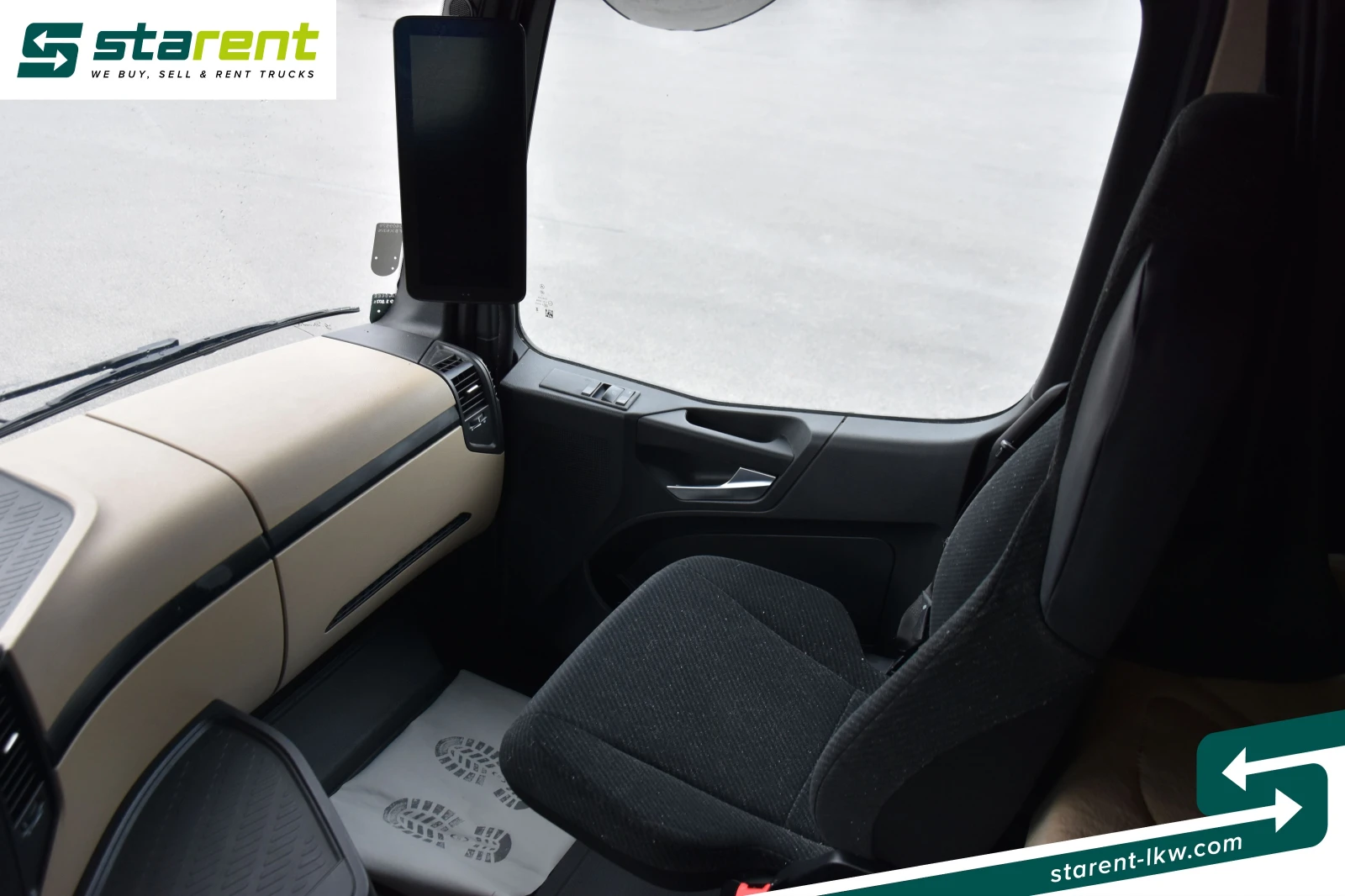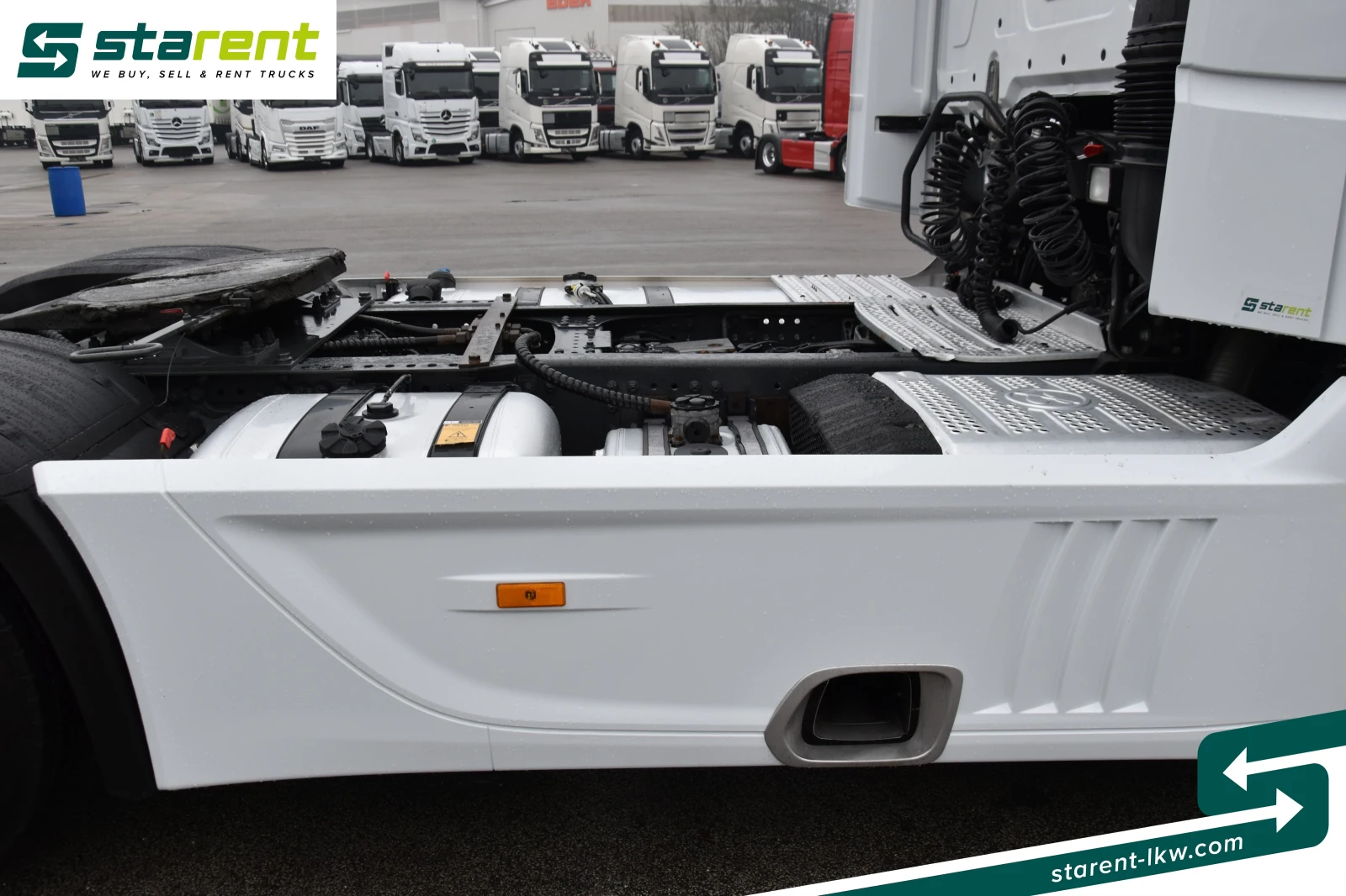 Mercedes-Benz Actros 1851 GIGA Space Хидравличен ретардер Допълнителен климатик С един поглед Първа регистрация: 25 август 2022 г. Производство: 2022 г. Двигател: 510 к. с. / 375 кВт Пробег: 312 554 км Цвят: Бял Евро стандарт: Евро 6 Трансмисия: Автоматична Междуосие: 3700 мм Гуми: Предни: 385/55 R 22. 5 Задни: 315/70 R 22. 5 Забележка: Налично веднага Допълнително оборудване: Хидравлична система (двулинейна), GIGA Space, Ретардер, Допълнителен климатик, MirrorCam, Навигация, Пълен пакет спойлери, Спойлер на покрива и странични калници, боядисани в цвета на каросерията (пълно боядисване), Сенник, Евро 6, Хладилник, Климатик, Допълнителен отоплител, Отопляеми седалки, Инерционна спирачка, Асистент за поддържане на лентата, 2 алуминиеви резервоара за гориво (720+ 290 = 1010 литра), комфортна седалка на водача, мултифункционален волан, мултимедиен кокпит, пневматичен пистолет, радио, две легла, LED дневни светлини, фарове за мъгла, аларма за заден ход, сензор за дъжд, сензор за светлина, предварително окабеляване на бордовата система (OBU), сертификат за ниско ниво на шум, стикер IG за въздух, A-табела. Стандартно оборудване: Електрически стъкла, бордови компютър, шибедах, блокировка на диференциала, тонирани стъкла, електрически регулируеми и отопляеми огледала, ABS, асистент за потегляне по наклон, ASR, дискови спирачки, листово/пневматично окачване, круиз контрол, 12 и 24-волтови контакти, гумени стелки за водача и пътника, сенник от страната на водача, теглич за пето колело, комплект инструменти, резервен ключ, капаци за колела, нивелиращ клин. _______________________________________ Вътрешен номер за справки: SZM26018 _______________________________________ офис телефон: +43 676 840 710 700/WhatsApp повече снимки и подробности моля вижте www. starent-lkw. com За да бъдете винаги информирани за нашите предложения, последвайте ни във Facebook, Instagram и се абонирайте за канала ни в YouTube.