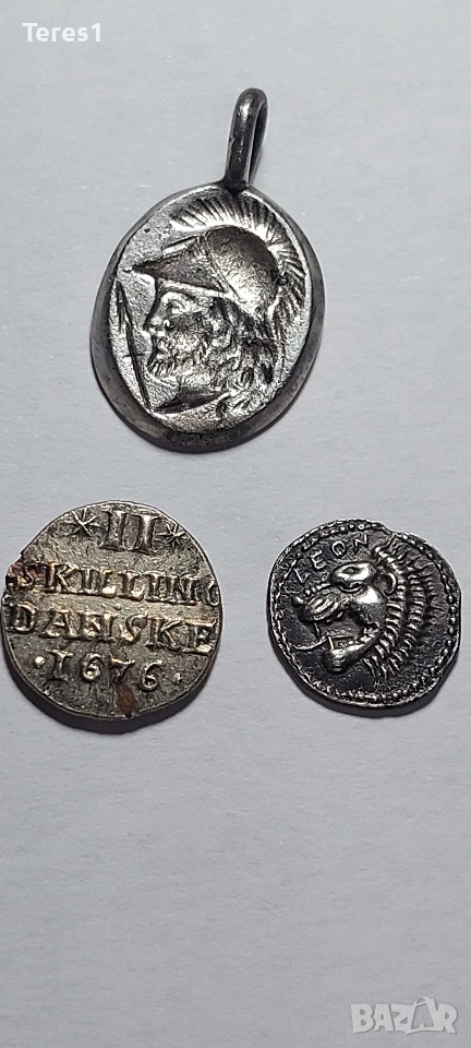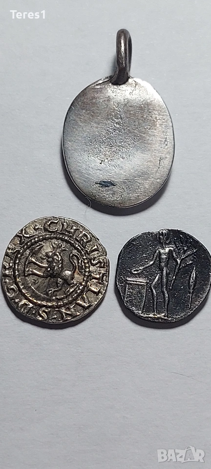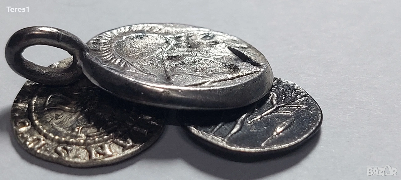 Медалъон сребърен + 2 сребърни монети реплика → Обява 53430218