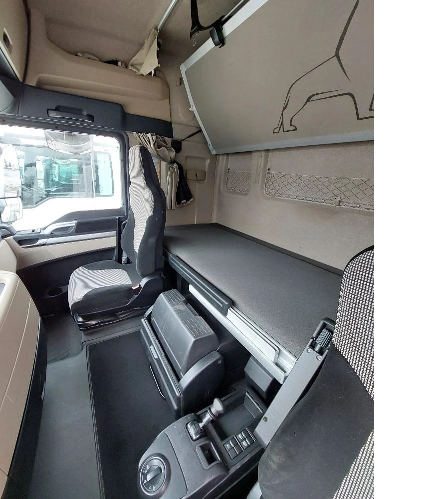 С ретардер и в перфектно състояние. Всичко работи, няма никакви грешки и технически забележки. Съединител на 100 000 км. За последната година са сменени адблу система и компресор. Чисто нови гуми, радиостанция, каско, ГО. Сменен тахограф Смарт 2. Нови акумулатори. Оглед след уговорка, защото камиона е работещ.