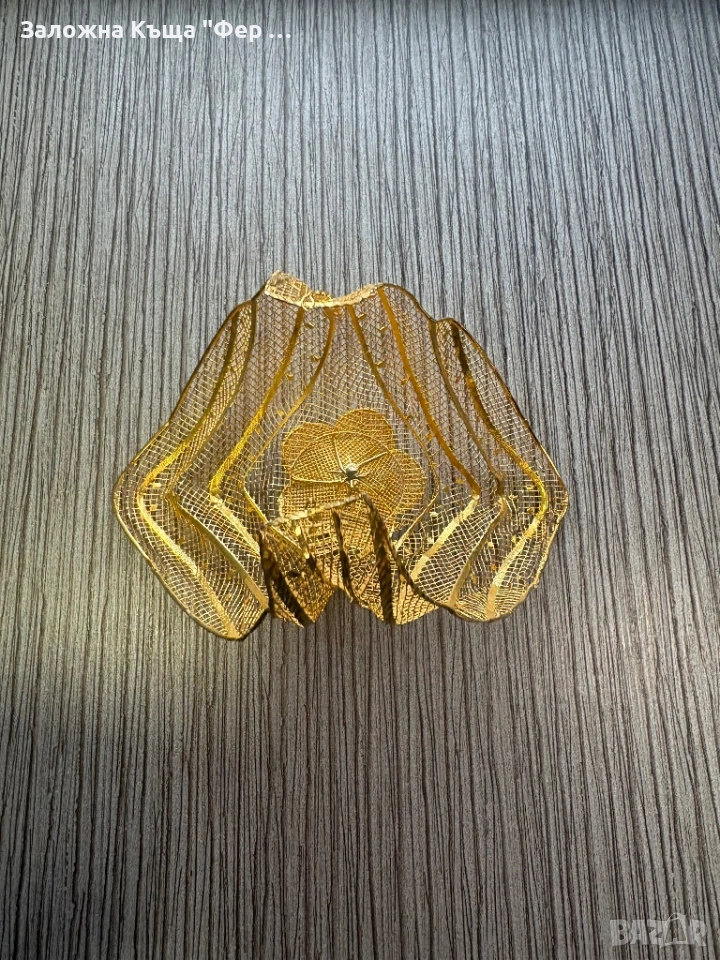 Гривната е носена веднъж в добро състояние, с печат проба 585 14карата. На една от снимките е снимана върху везната. Цена за грам 110€.