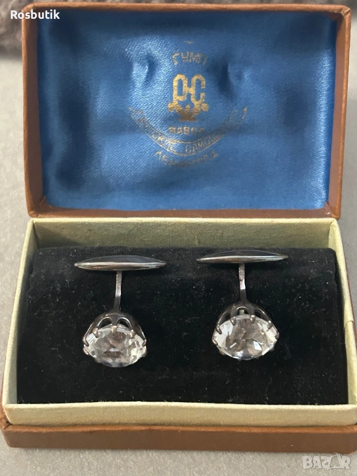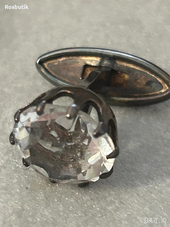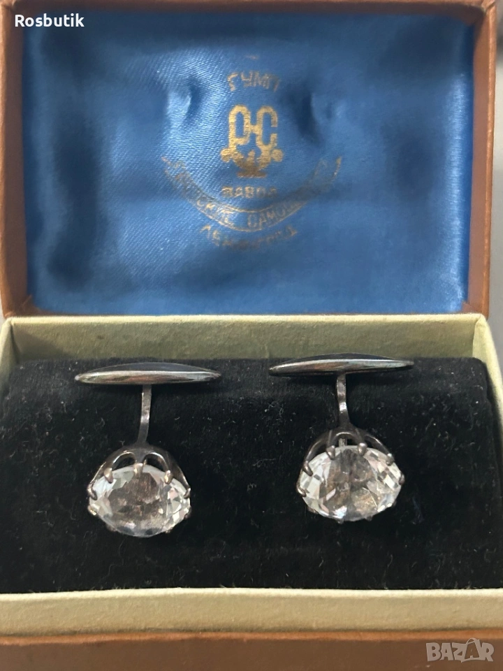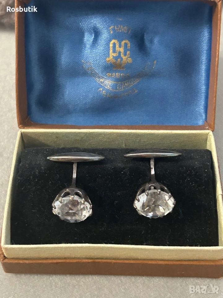 Антикварни редки Съветски сребърни ръкавели с планински кристал → Обява 53430509