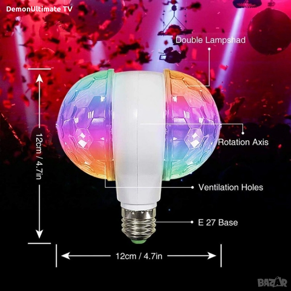 Диско LED лампа, въртяща се крушка - автоматично въртене с кристални топки, снимка 1 - Друга електроника - 53430700 Диско LED лампа, въртяща се крушка - автоматично въртене с кристални топки, снимка 2 - Друга електроника - 53430700 Диско LED лампа, въртяща се крушка - автоматично въртене с кристални топки, снимка 3 - Друга електроника - 53430700 1/3
