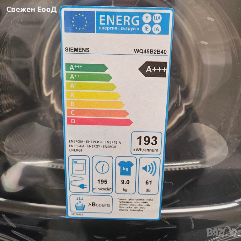 Сушилня с термопомпа Siemens WQ45B2B40 9 кг, QI 700, самопочистващ се кондензатор.