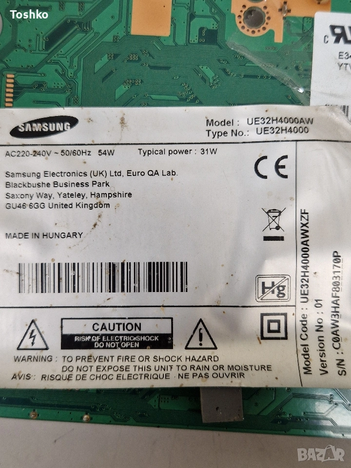 SAMSUNG UE32H4000AW MAIN BOARD BN41-02098B BN94-07207A POWER BOARD BN44-00696A PANEL HH032AGH-R1 → Обява 53430945