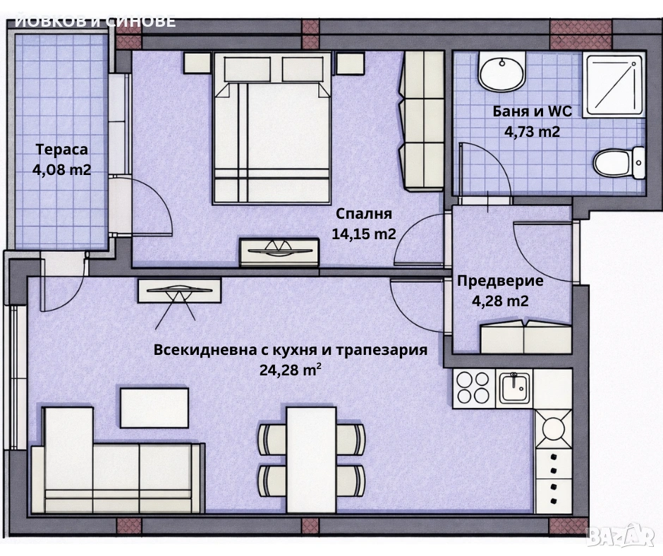 Напълно обзаведен двустаен апартамент в кв. Кючук Париж