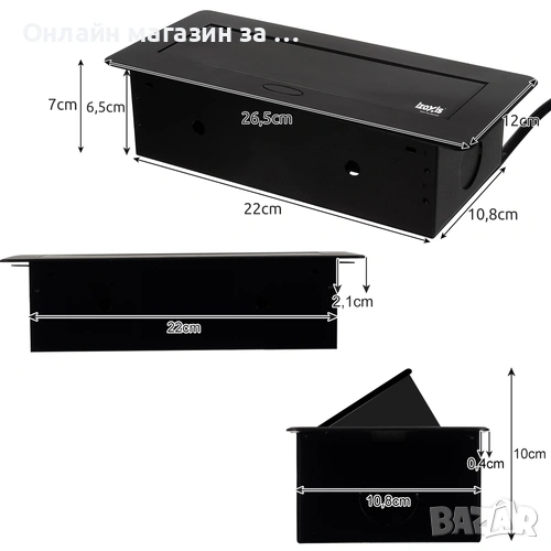 - размери на монтажния отвор: 22 x 10,8 x 6,5 cm (ширина/височина/дълбочина);