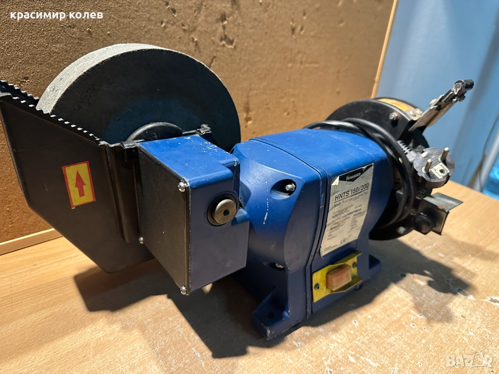 При включване в мрежата машината бучи.Този тип машини са изключително полезни за прецизно заточване на инструменти, като съчетават високооборотен диск за груба работа и бавнооборотен воден диск за фино заточване.
