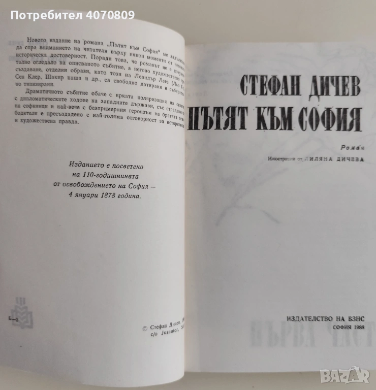Стефан Дичев - Пътят към София 1988г., съст. отлично - 1.10 евро