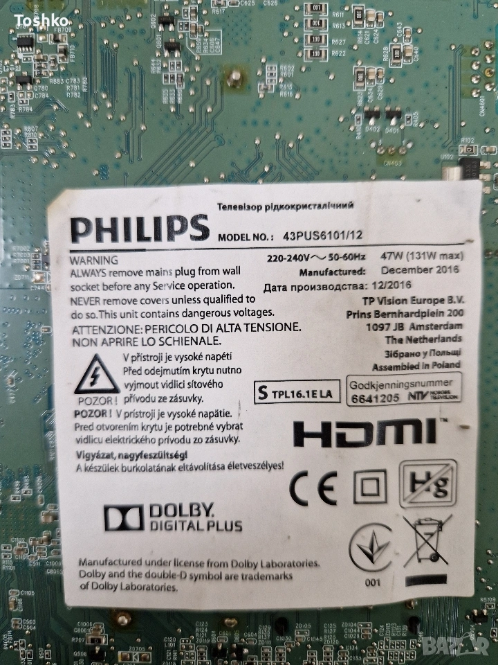 PHILIPS 43PUS6101/12 715G8132-M01-B00-005T 715G7350-P01-000-002S  6870C-0552A  TPT430U3-EQYSHM.G, снимка 1 - Части и Платки - 53431791 PHILIPS 43PUS6101/12 715G8132-M01-B00-005T 715G7350-P01-000-002S  6870C-0552A  TPT430U3-EQYSHM.G, снимка 2 - Части и Платки - 53431791 PHILIPS 43PUS6101/12 715G8132-M01-B00-005T 715G7350-P01-000-002S  6870C-0552A  TPT430U3-EQYSHM.G, снимка 3 - Части и Платки - 53431791 PHILIPS 43PUS6101/12 715G8132-M01-B00-005T 715G7350-P01-000-002S  6870C-0552A  TPT430U3-EQYSHM.G, снимка 4 - Части и Платки - 53431791 PHILIPS 43PUS6101/12 715G8132-M01-B00-005T 715G7350-P01-000-002S  6870C-0552A  TPT430U3-EQYSHM.G, снимка 5 - Части и Платки - 53431791 PHILIPS 43PUS6101/12 715G8132-M01-B00-005T 715G7350-P01-000-002S  6870C-0552A  TPT430U3-EQYSHM.G, снимка 6 - Части и Платки - 53431791 PHILIPS 43PUS6101/12 715G8132-M01-B00-005T 715G7350-P01-000-002S  6870C-0552A  TPT430U3-EQYSHM.G, снимка 7 - Части и Платки - 53431791 PHILIPS 43PUS6101/12 715G8132-M01-B00-005T 715G7350-P01-000-002S  6870C-0552A  TPT430U3-EQYSHM.G, снимка 8 - Части и Платки - 53431791 1/8