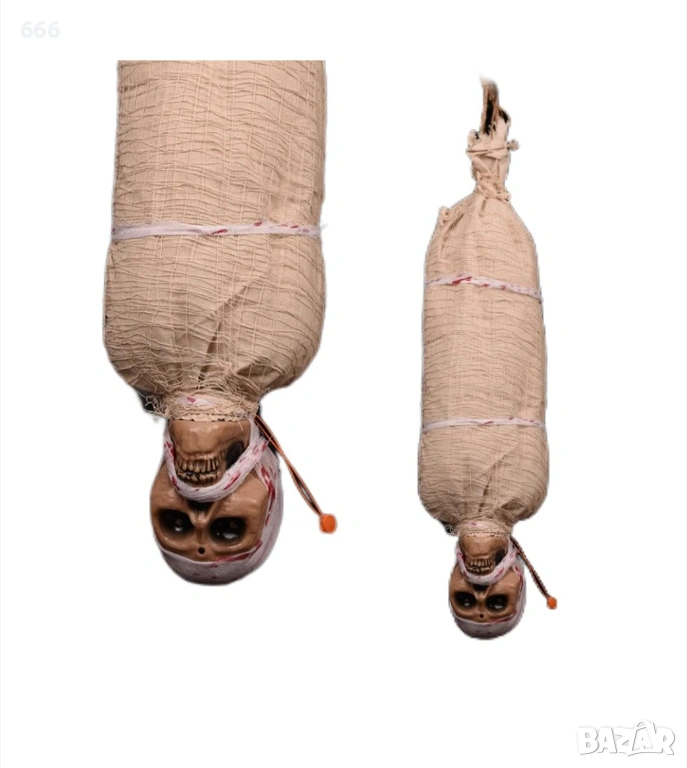 1. Два начина за декориране на реквизити за Хелоуин: Най-зловещите реквизити за Хелоуин в стил „къща с духове“ могат да бъдат поставени в двора, гробището, градината, ваната, балкона или можете да ги окачите на дърво, врата или където и да е другаде, което искате да украсите. Те ще ви помогнат да направите вашите декорации за Хелоуин по-страшни. 2. Ужасяващ LED светлинен и звуков ефект: С настройки на превключвателя, когато докоснете висящия призрак, очите на призраците ще светят и ще бъдат придружени от ужасяващ звук, който изисква 3 AA батерии (не са включени). 3. Материал и размер: Реквизитът с мумия за Хелоуин е изработен от смолен скелет и памучен пълнеж и е компресируем. Реквизитът е дълъг около 76 см и ще добави още изненади за вашите гости. 4. Страшно: Зловещи реквизити за местопрестъпление за Хелоуин, за да изплашите коледарите. 5. Декорации за Хелоуин: Реквизитите с мумия са добър избор за декорации за Хелоуин. Можете да ги използвате за декорация на Хелоуин парти, парти в стил „къща с духове“, парти с зомбита и вампири, местопрестъпление в магазин за месар, местопрестъпление, изложба в стил „къща с духове“ в магазин за месар или всяко парти на тема Хелоуин и др.
