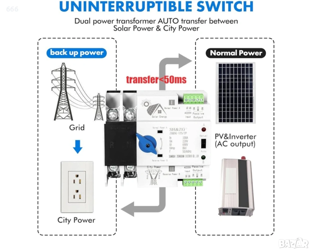 Име на продукта: Автоматичен превключвател за прехвърляне с двойно захранване