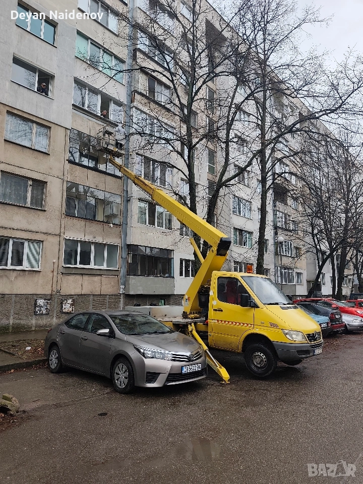 Автовишка до 22м.Рязане и кастрене на дървета с автовишка.Ремонт на покриви,саниране,монтаж на рекламни съоръжения,монтаж на климатици и др.