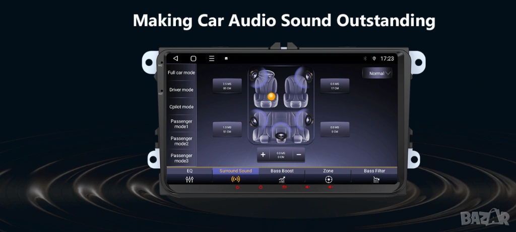 - Аудио: Вграден DSP (цифров сигнален процесор) за подобряване на звука и чип за усилвател TDA7388 с максимална мощност 4x45W.