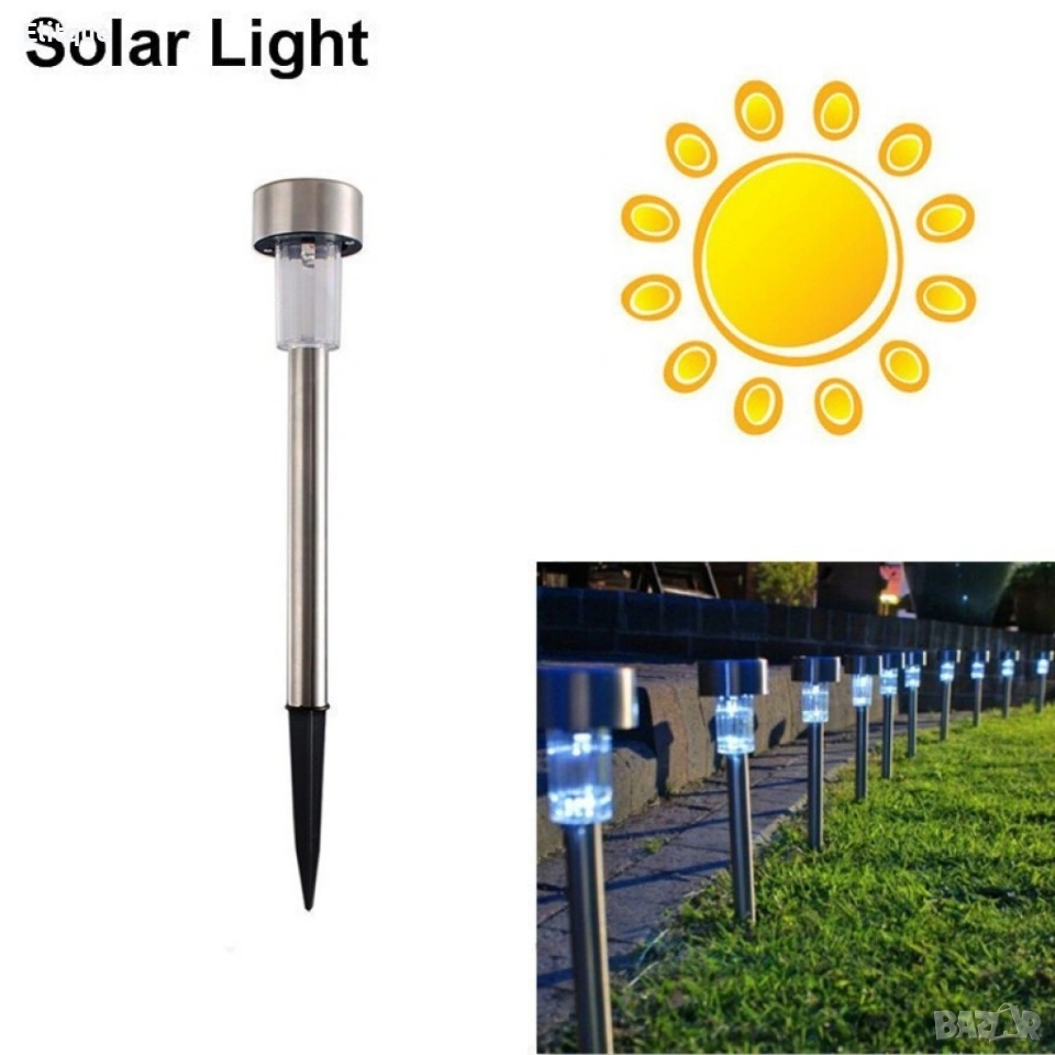 Комплект от 6 броя соларни градински LED лампи за алеи и зони Практичен и елегантен комплект соларни LED лампи, предназначени за осветяване и оформяне на градински алеи, дворове, пътеки и външни зони. Лампите се зареждат от слънчевата светлина през деня и се включват автоматично при здрач, без нужда от кабели или допълнително захранване. Подходящи са за целогодишна употреба и създават приятна и уютна атмосфера около дома. Характеристики: Комплект: 6 броя соларни LED лампи Захранване: соларно (без кабели) Автоматично включване при здрач Подходящи за външна употреба Лесен монтаж – забиване в земята Предимства: Енергоспестяващи и екологични Без разходи за електричество Подходящи за алеи, пътеки и градини Декоративно и функционално осветление Доставка с Еконт с опция преглед и тест до 3 работни дни.