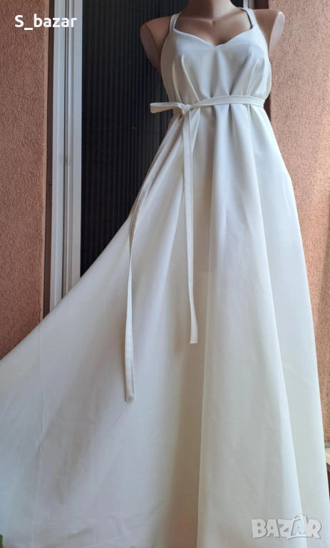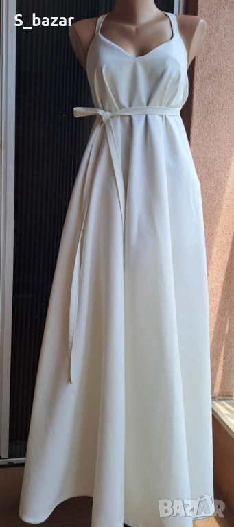 Нова рокля,с гол гръб,one size.Роклята е с подплата,свободен,разкроен модел,затова е подходяща за С/М/Л.Дължина,измерена от предната част(където започват връзките)е 130см