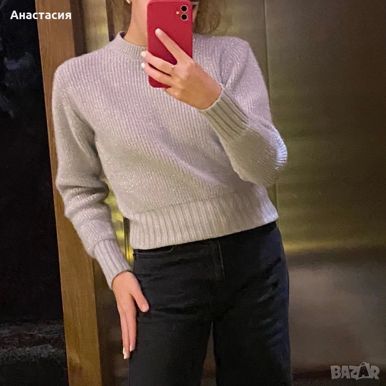 Сребрист бляскав пуловер  , снимка 1 - Блузи с дълъг ръкав и пуловери - 53432902 Сребрист бляскав пуловер  , снимка 2 - Блузи с дълъг ръкав и пуловери - 53432902 1/2