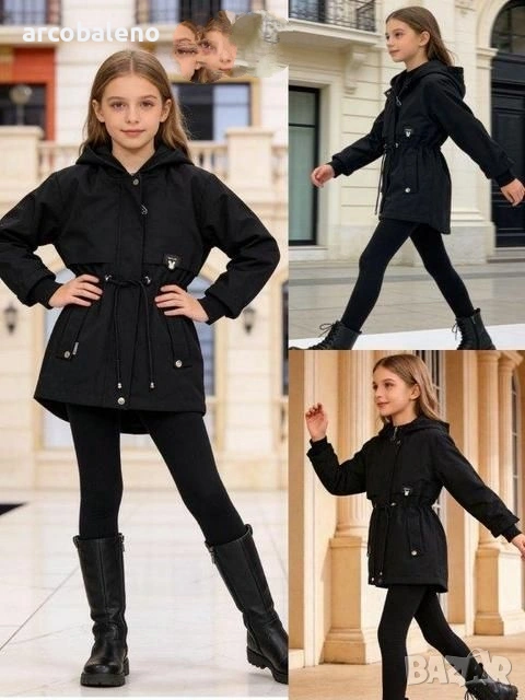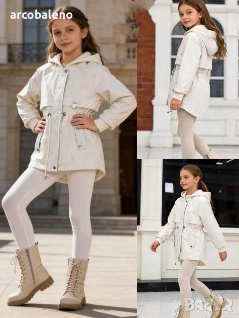 Пролетна парка с качулка, връзка за стягане на талията и странични джобове.