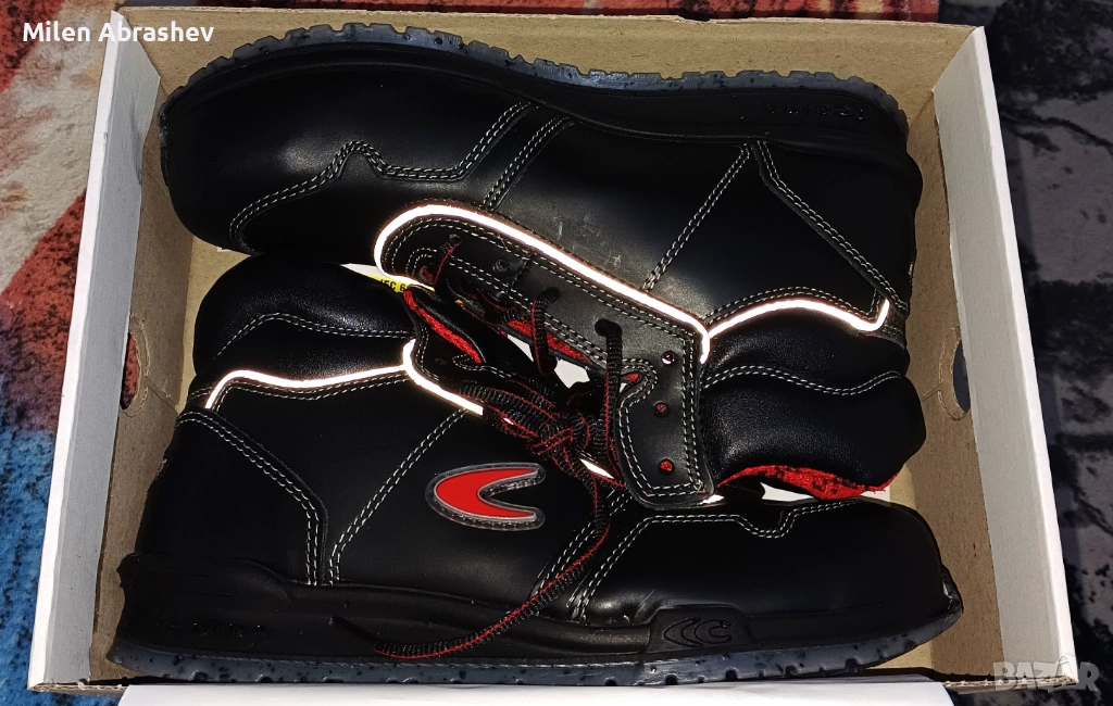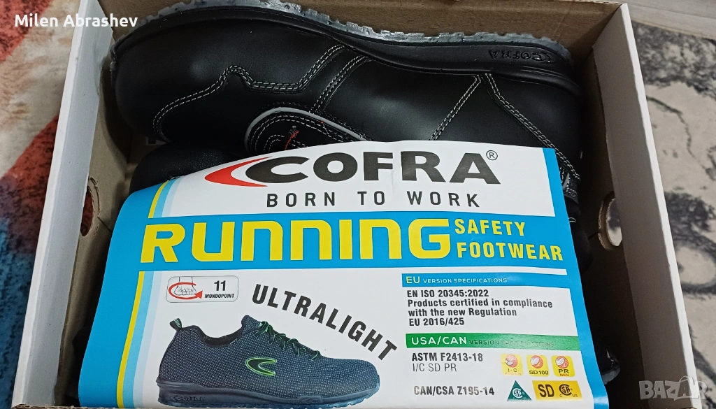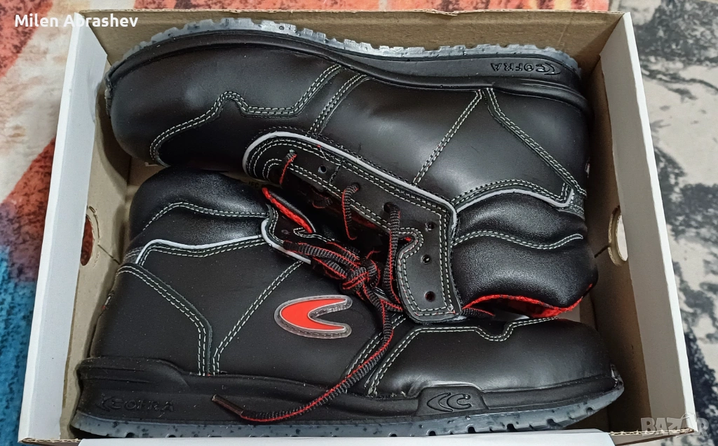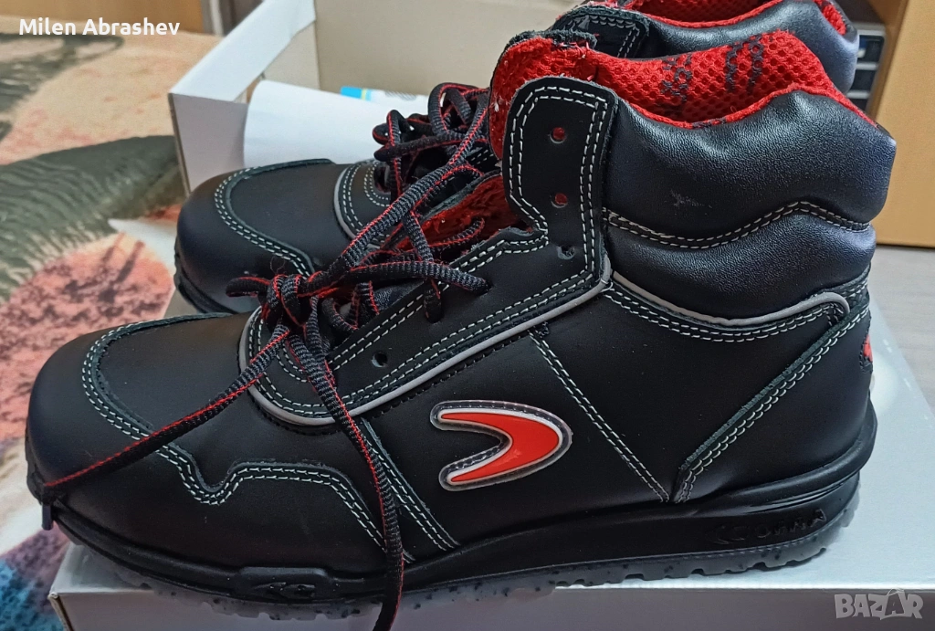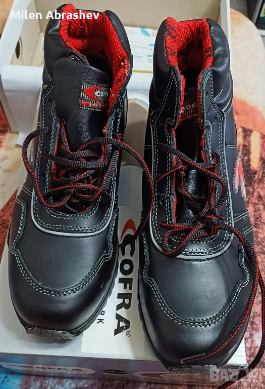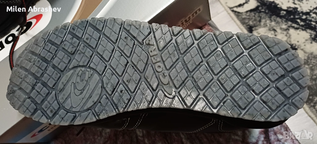 Работна обувка от водоотблъскваща кожа с, 100% полиестерна, триизмерна, дишаща, антибактериална, поглъща и извежда влагата, устойчива на износване, подплата.